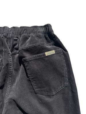 細畝のコーデュロイを使用したスラックス。 シルエットは25SSでも好評だったストレートタイプから 裾幅を若干狭く微調整したテーパード感の少ないシルエット。 ウエストはゴム仕様ながらベルトループも付くのでタックインでの着こなしにも対応。 One Size ウエスト:68cm~90cm 股上:35cm 股下:70cm ワタリ:37cm 裾巾:26cm COTTON 85% POLYESTER 15%