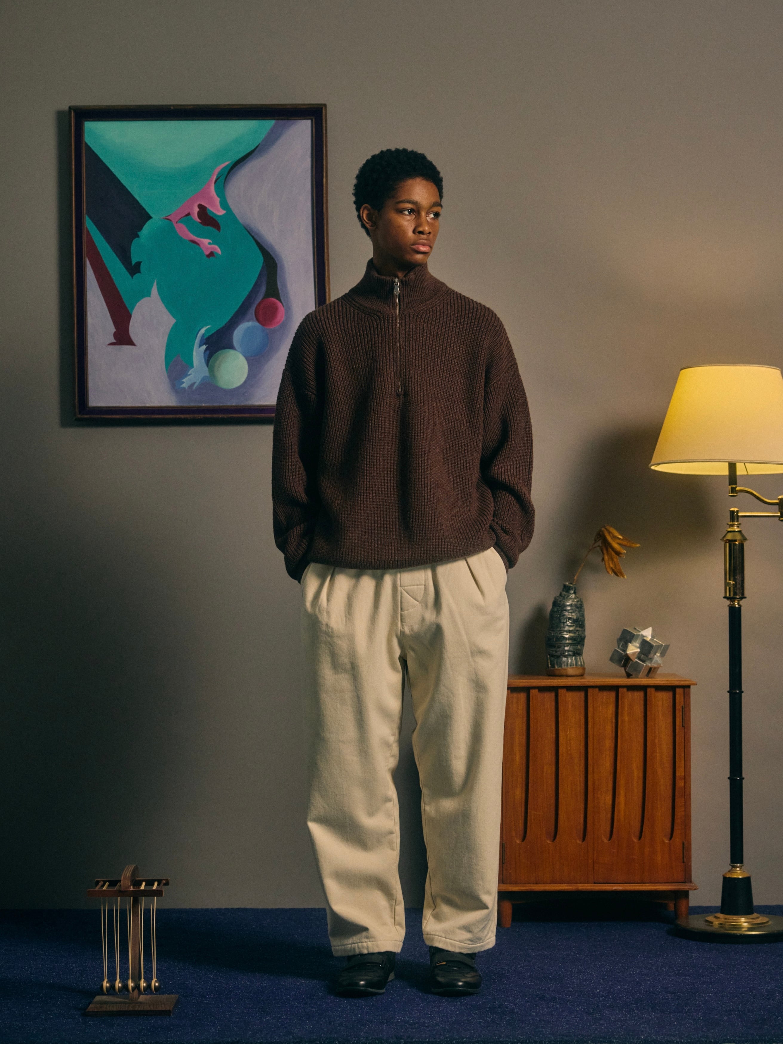 シルエットはDaily Slacksのテーパード感あるシルエットから生地の厚みを考慮し股上・裾幅をアップデートしたシルエット。