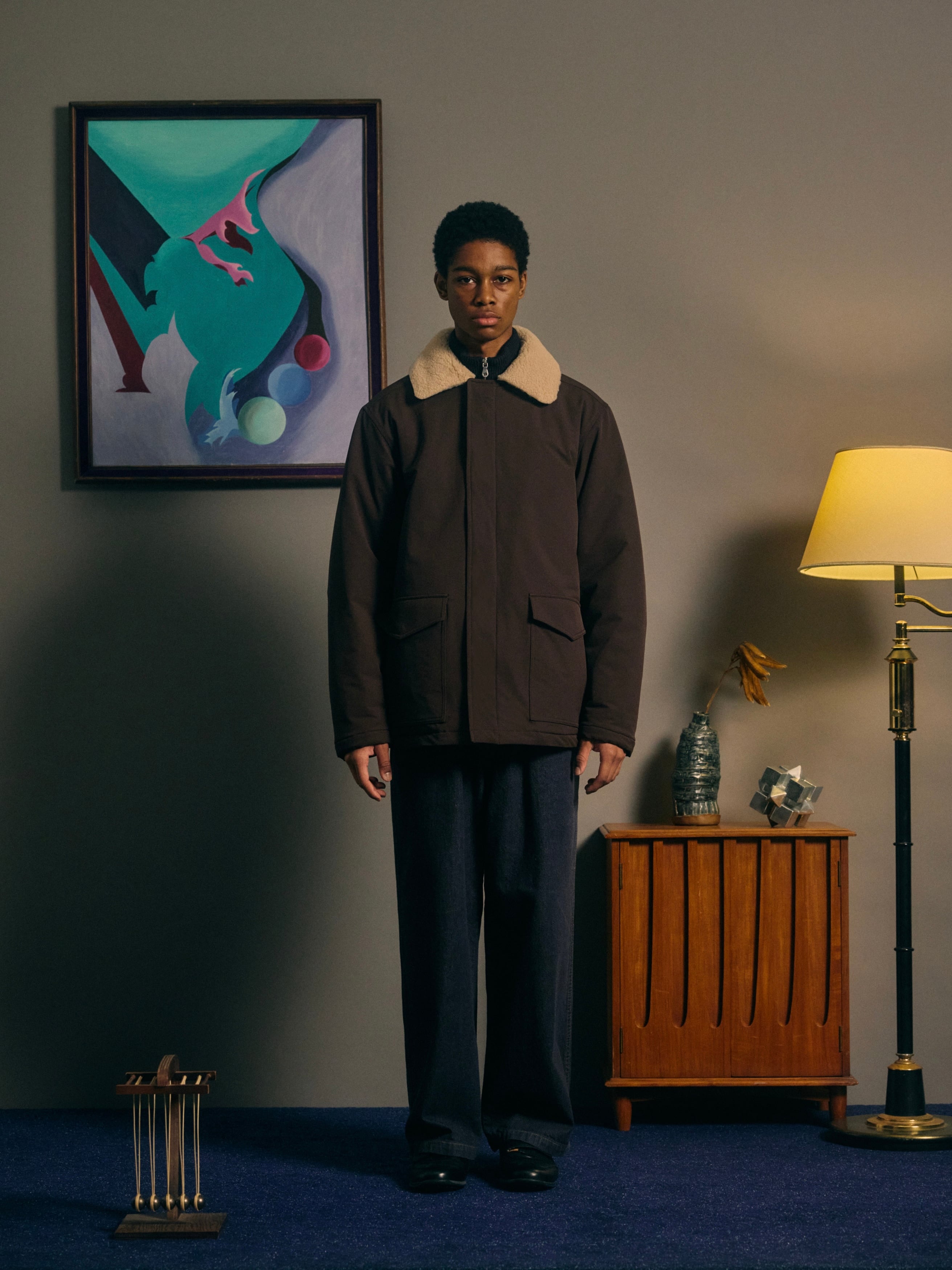 衿には密度の高いボアを配置しフライトジャケットライクな雰囲気を演出。