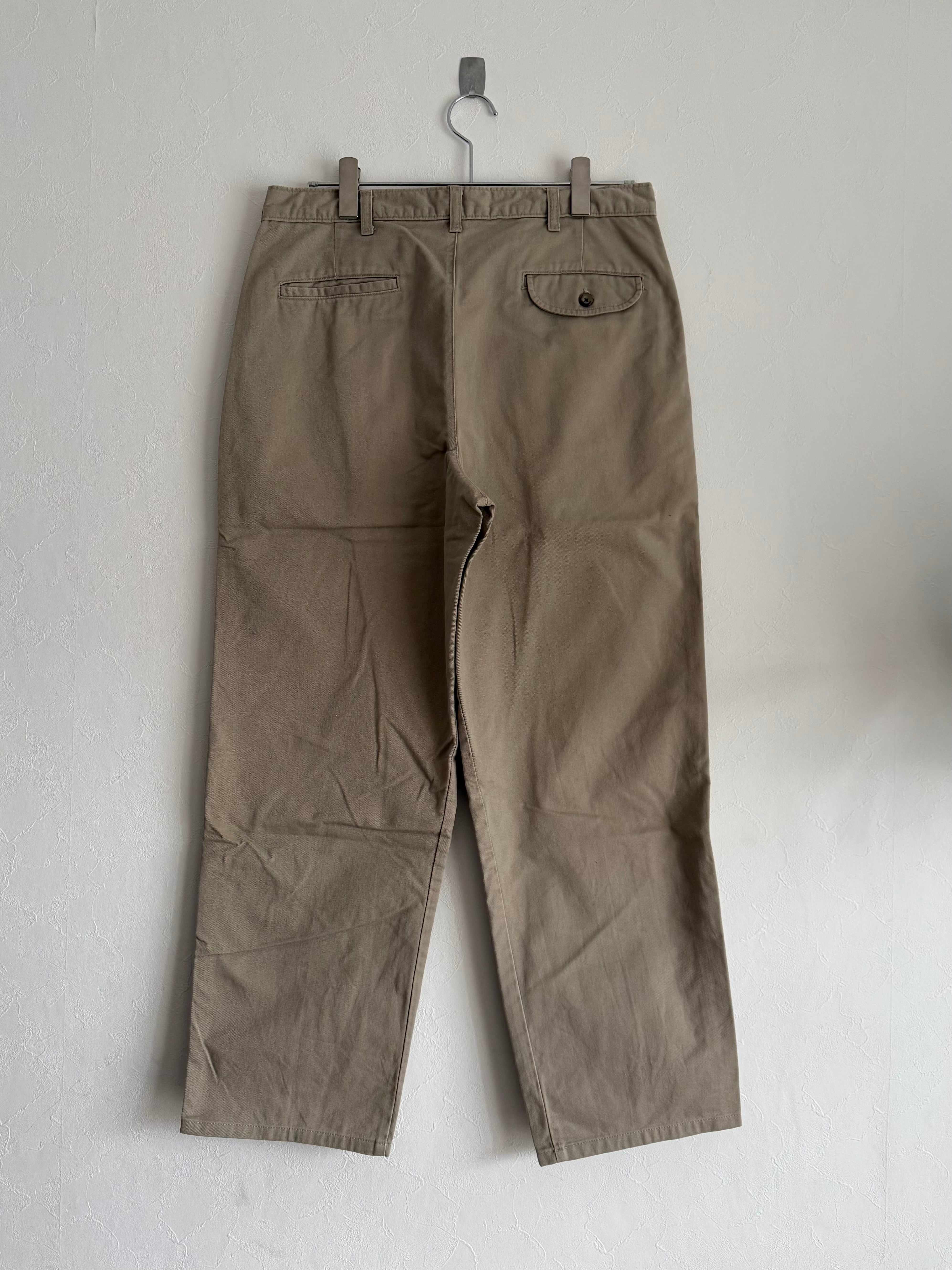 US ARMYチノのようなコシ感のある生地でサイドシームがダブルステッチ、バックポケットは片方フラップポケットタイプのレアなモデルです。