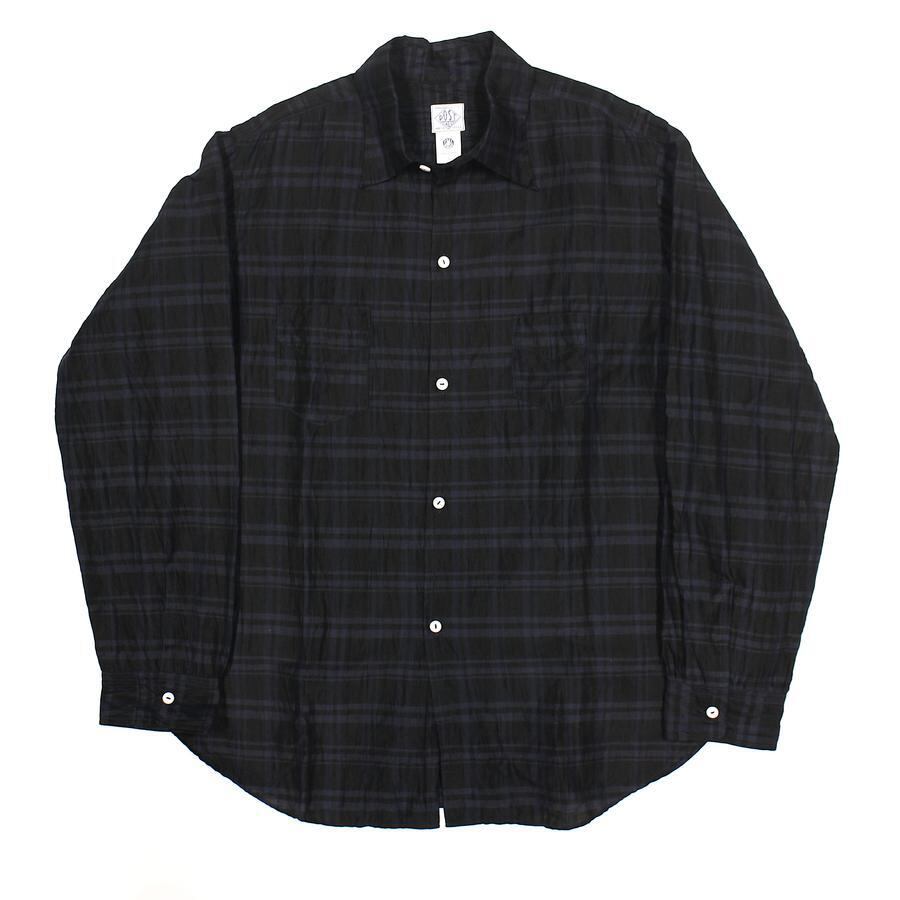 この一枚はシワ加工されたリネン/コットン地を使用しており、暑い日にも身体に接する生地の面積がコントロールされた、非常に涼しいものとなっています。
