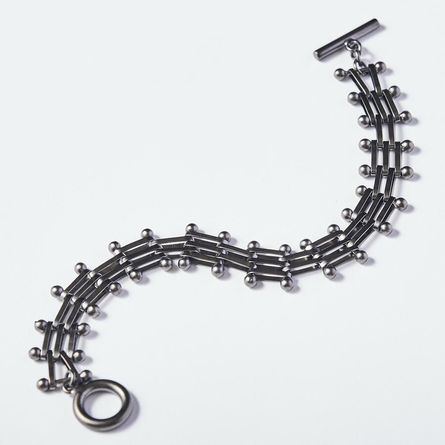 好評のビンテージ・メキシカンスタイルのブレスレットに、マットブラック仕上げのニューバージョンが登場しました。 デザインとフィニッシュの組み合わせが、ありそうでない独特で新鮮なムードを放っています。 セットアップのキーチェーンも同時リリースとなっています。 ブラス製、19.5CM。 brass made in JAPAN