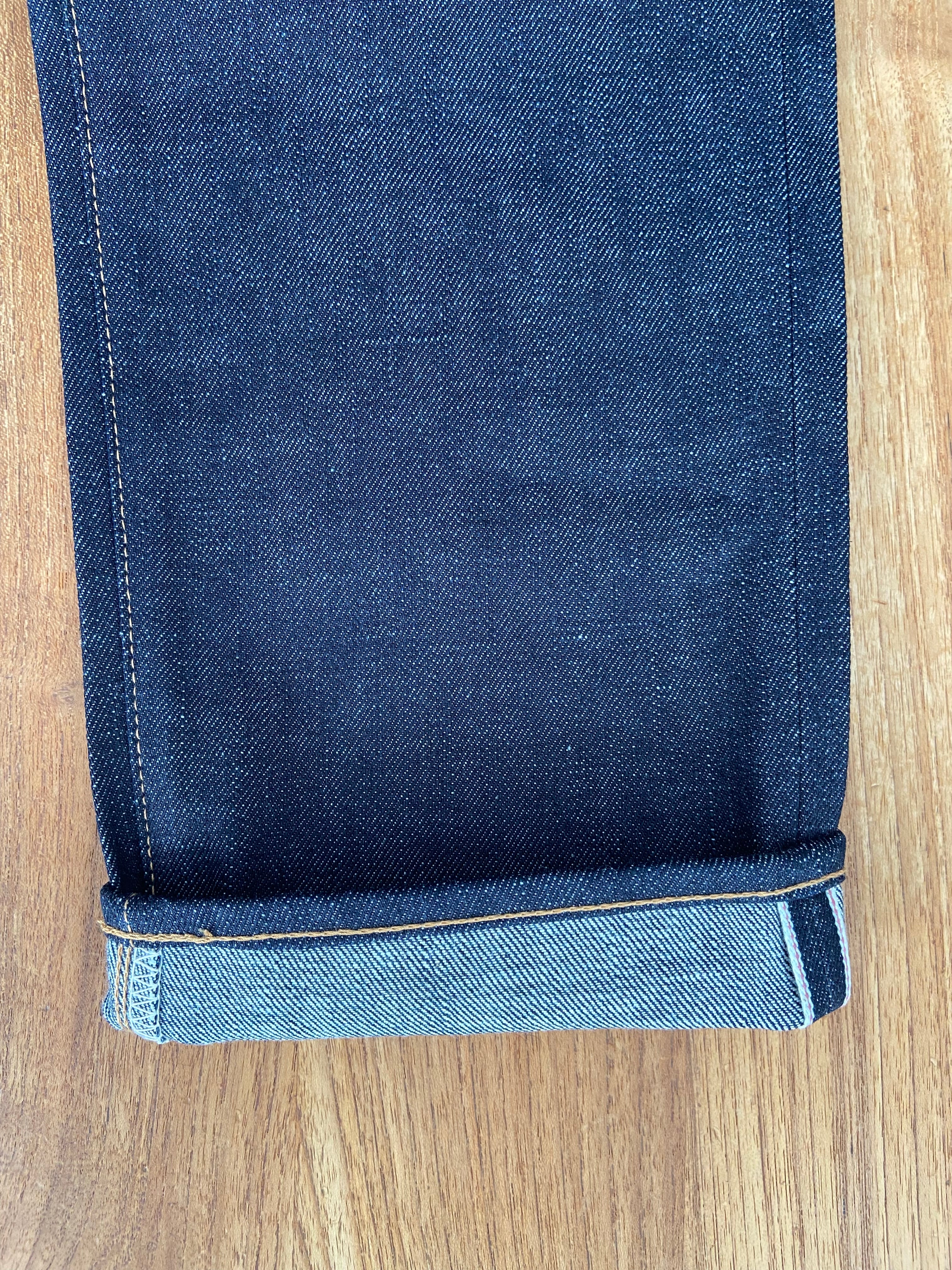 打ち込み過ぎず弱テンションで織られている為、穿き込んでいくと生地が柔らかくなり綺麗に縦落ちがでてきます。
