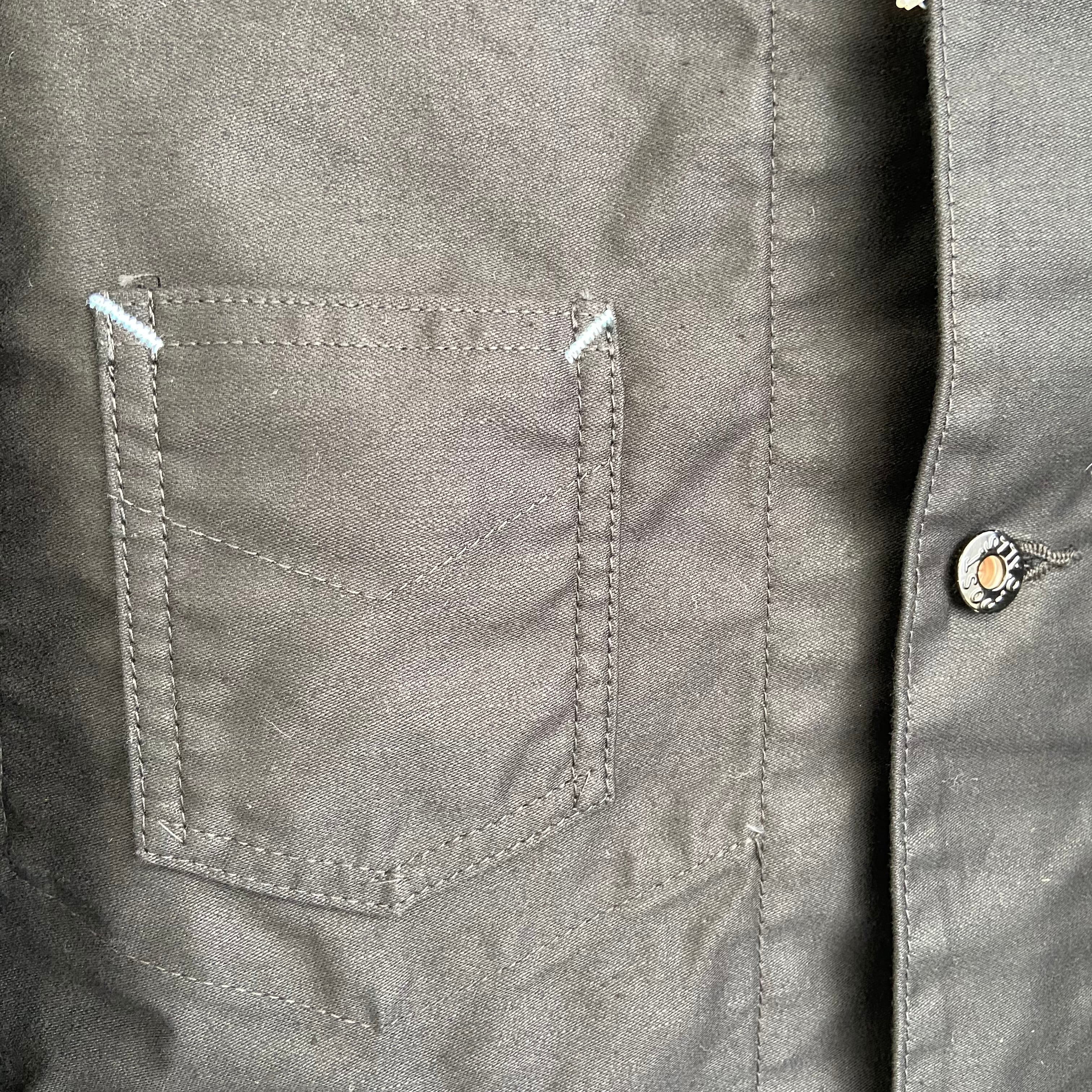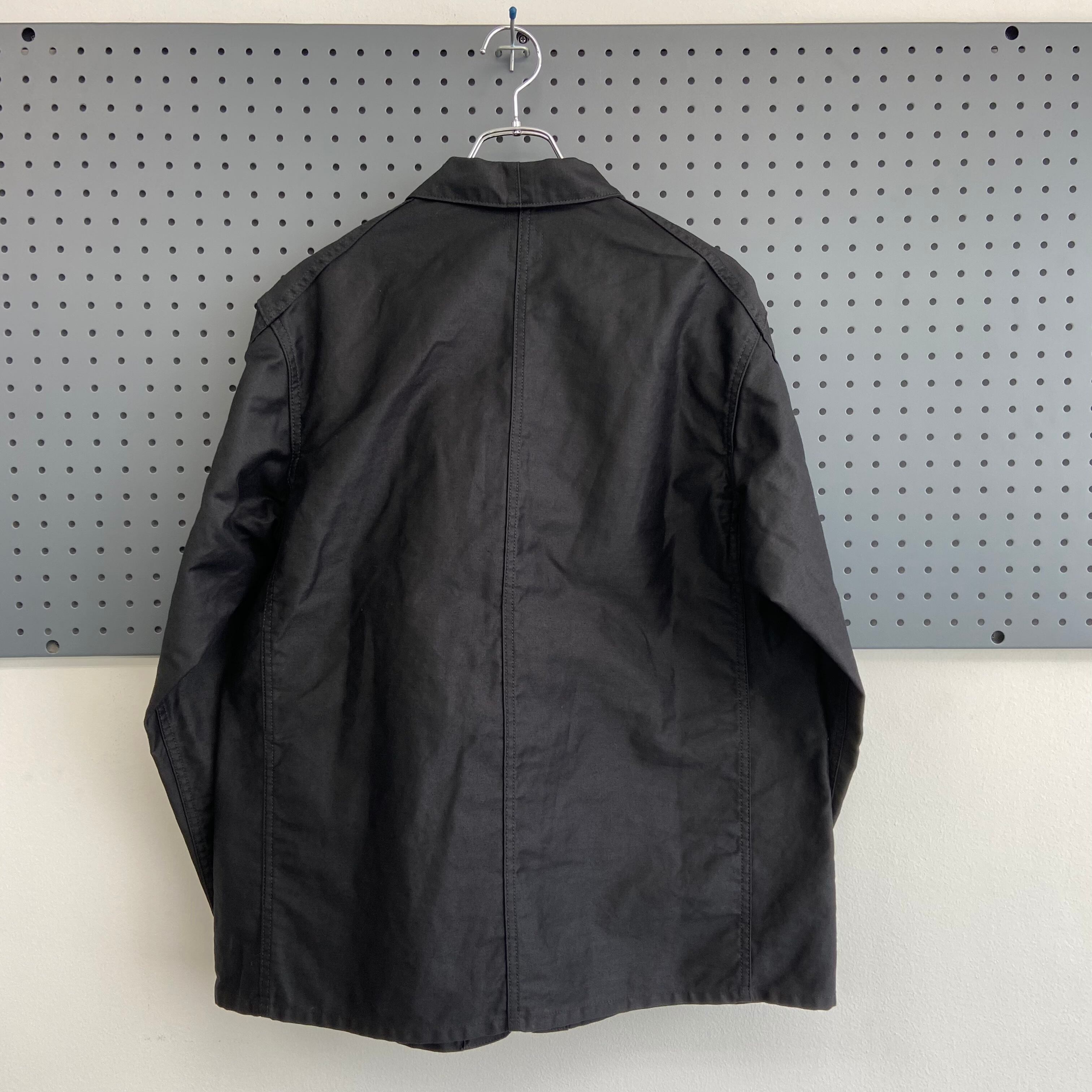 この一枚は、1910年代頃に実在したブラックのモールスキン/コットンサテンを使用しており、ワークウエアではあまり見かけないエキゾチックなムードを放っています。
