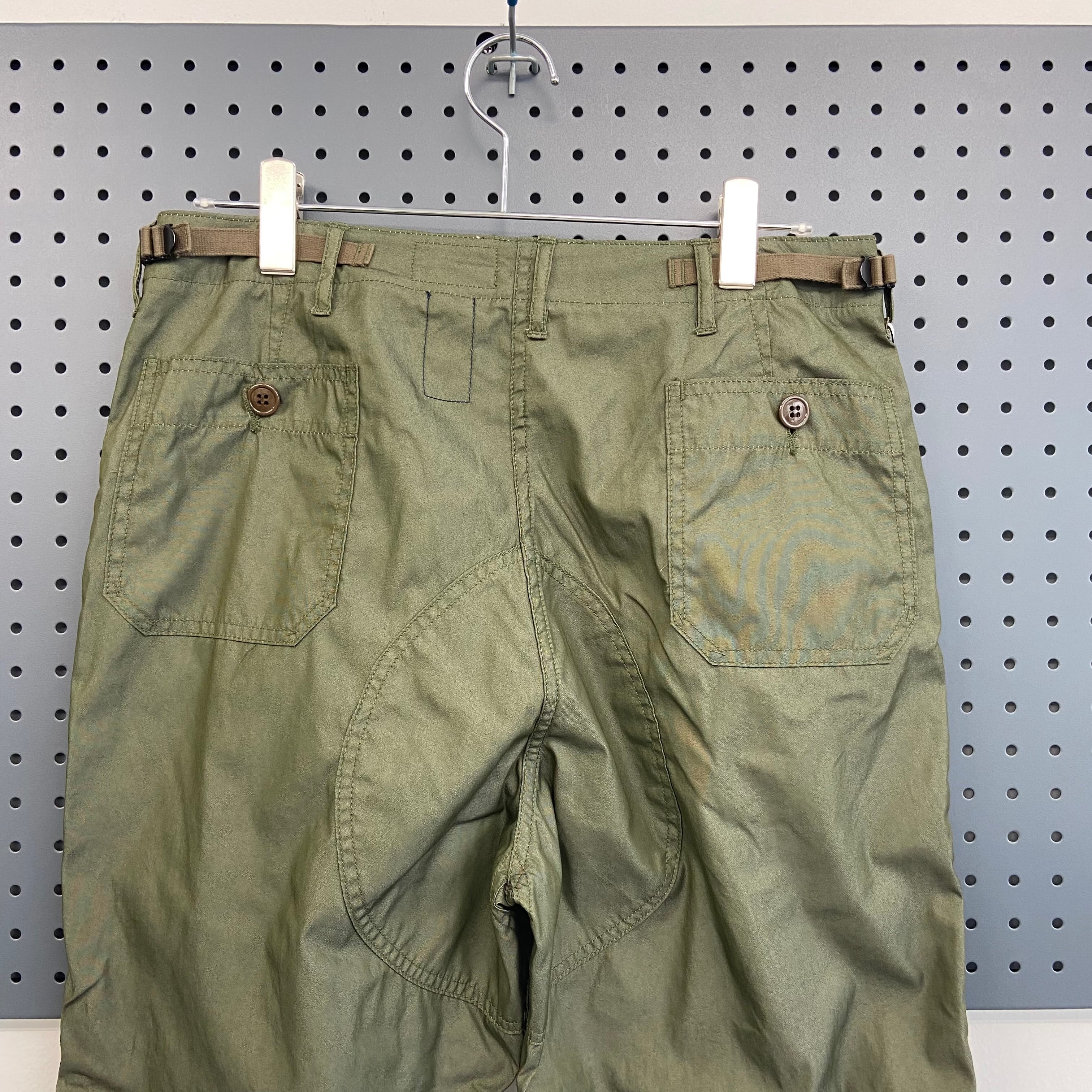 ウエスト左右にはミリタリーパンツらしいバックル付きで、サイズアジャスターが付きます。