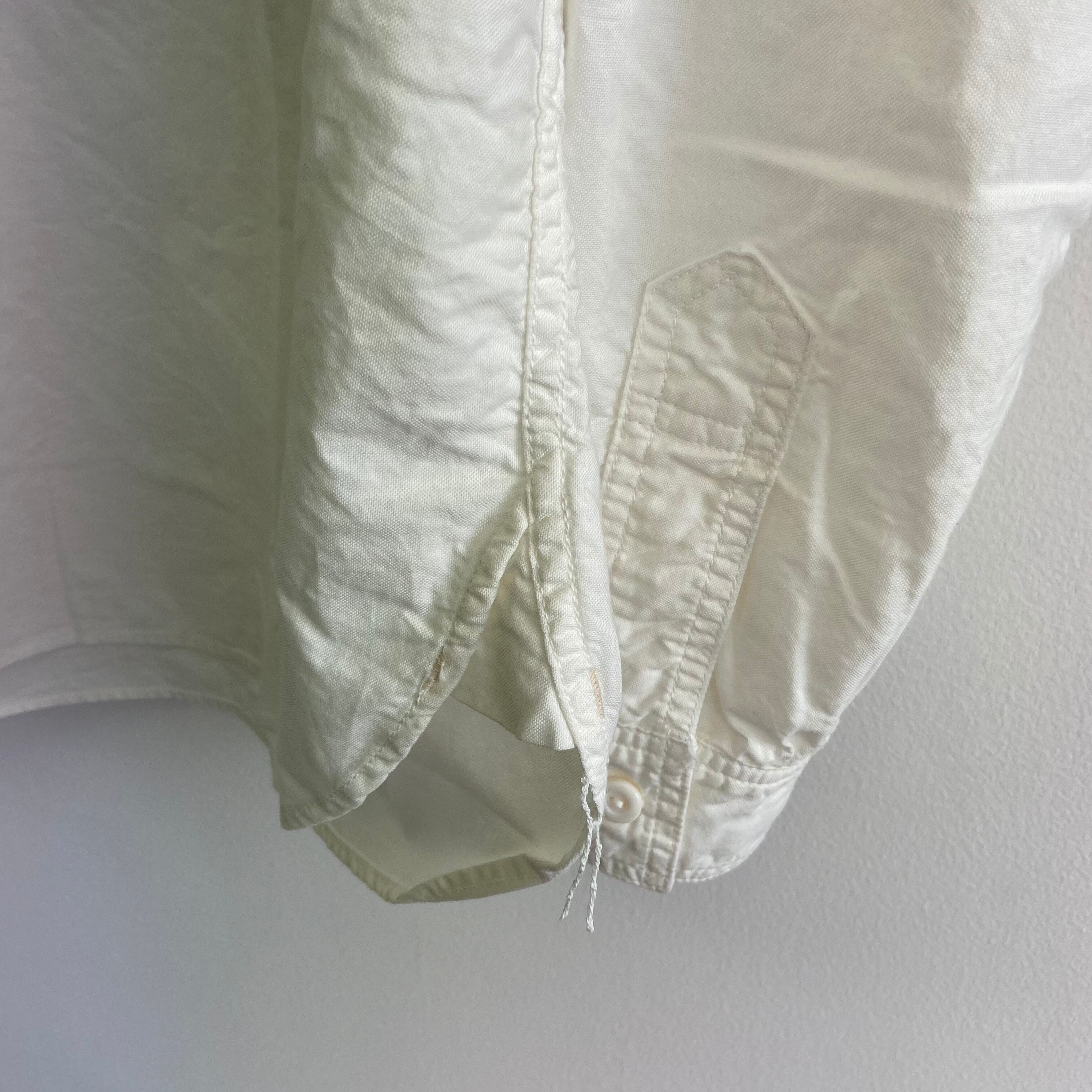 この一枚はPost O`Allsのワークシャツとしては定番のホワイトのオックスフォード地を使用、ドレスシャツとはまた違った世界が広がります。