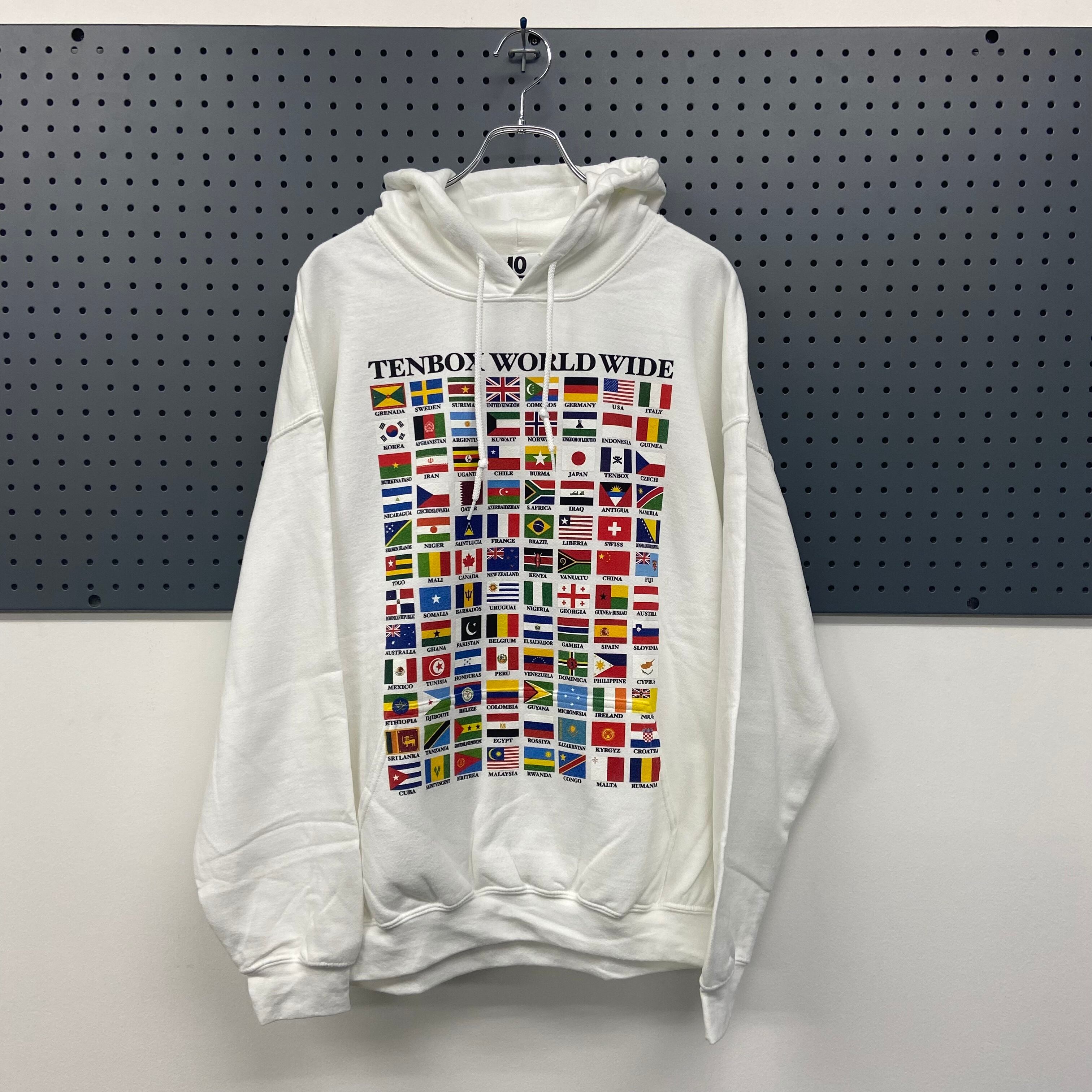 90sを象徴するWORLD FLAGプリントをTENBOXがアップデート。 当時あった国がなくなっていたり、新しく増えた国もありと国旗数が増えた2022年ヴァージョン。 Lサイズ 着丈71 肩幅61 裄丈88 XLサイズ 着丈73 肩幅66 裄丈91 COTTON 50% POLYESTER 50% model / 162cm56kg / Lサイズ