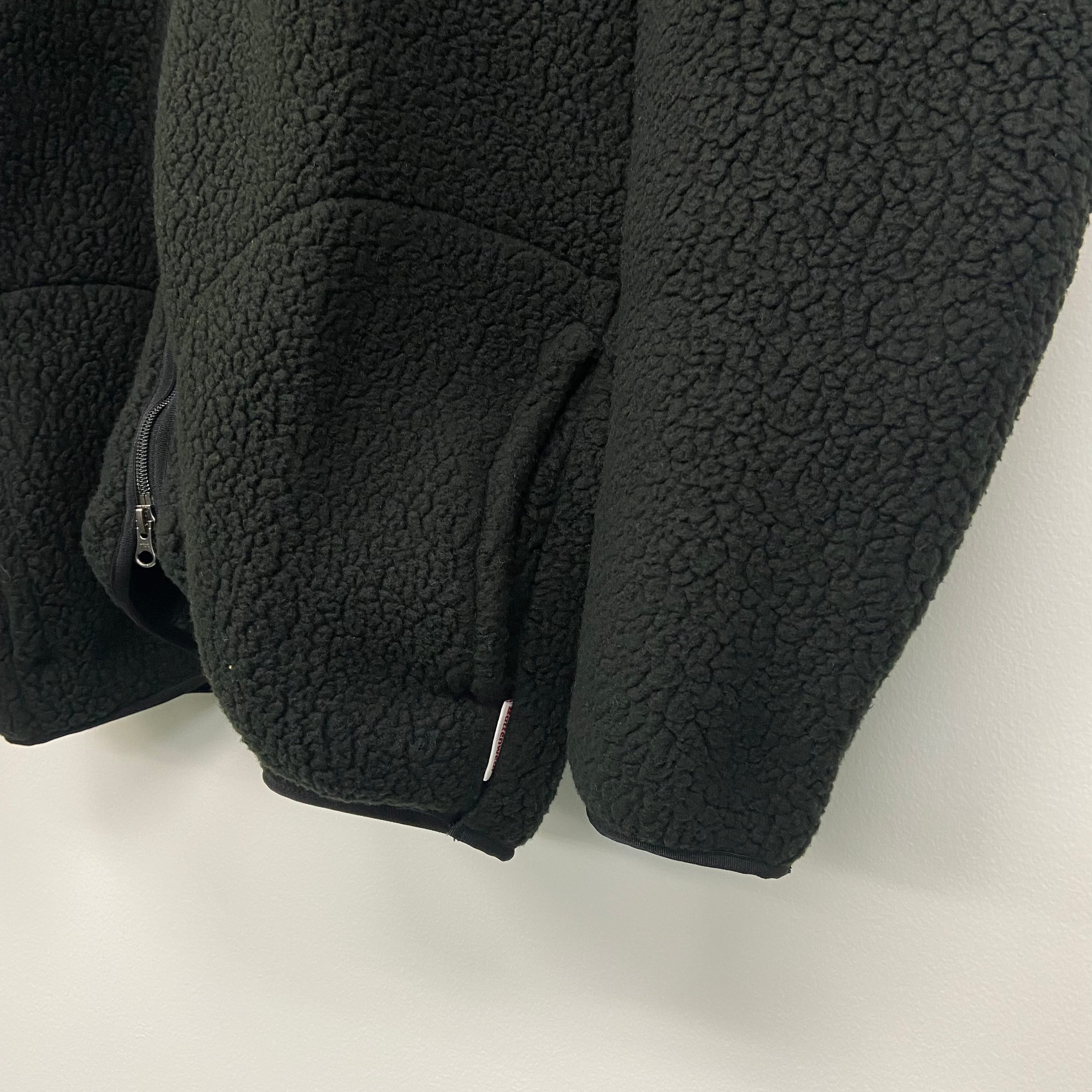 BATTENWEAR定番のLODGE CARDIGAN フロントはダブルジップで胸のジップポケット、オープンポケットのハンドウォーマーポケットがついてます。 パイピングの袖リブでインアウトどちらでも対応できる汎用性の高いアイテムです。 生地はポーラテック社のSHEARLING FLEECEを使用してます。 Lサイズ 身幅60 肩幅50.5 着丈72.5 袖丈61 ポリエステル100% アメリカ製