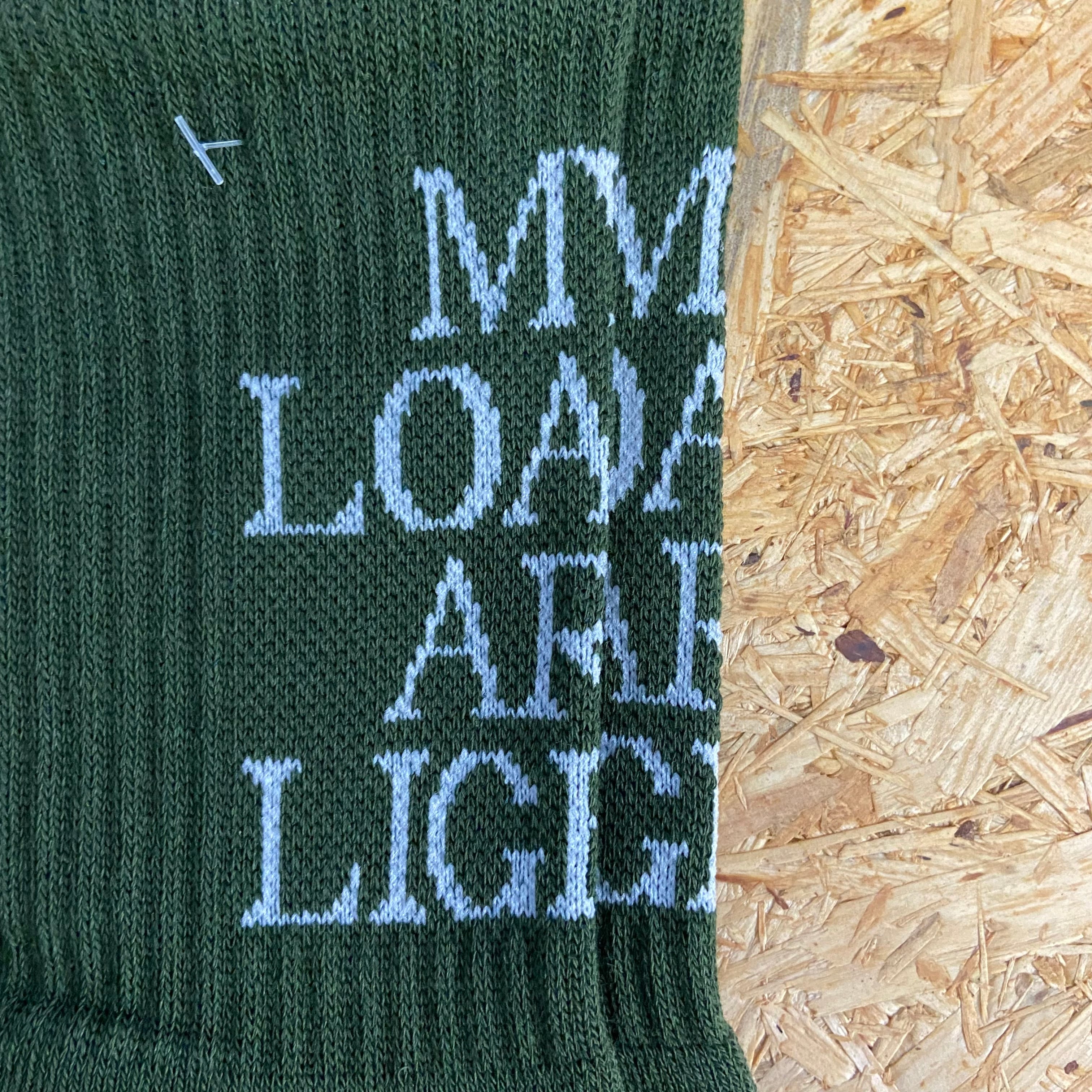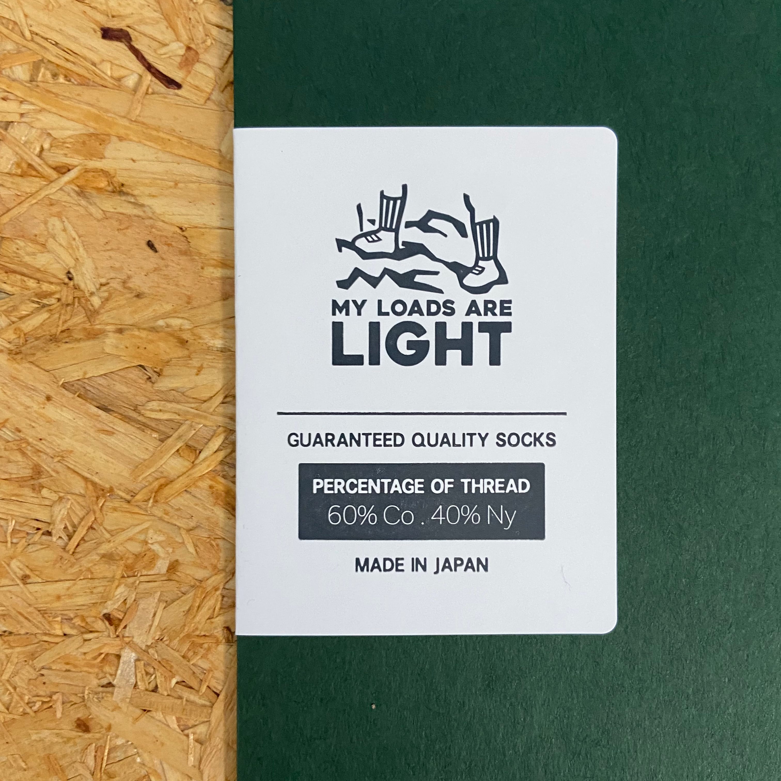 MY LOADS ARE LIGHT定番の「TEXT」 コーデュラナイロンを40%使用した新素材で強度を高めております。 糸:コットン60% ナイロン40% 型:パイル フリーサイズ 日本製