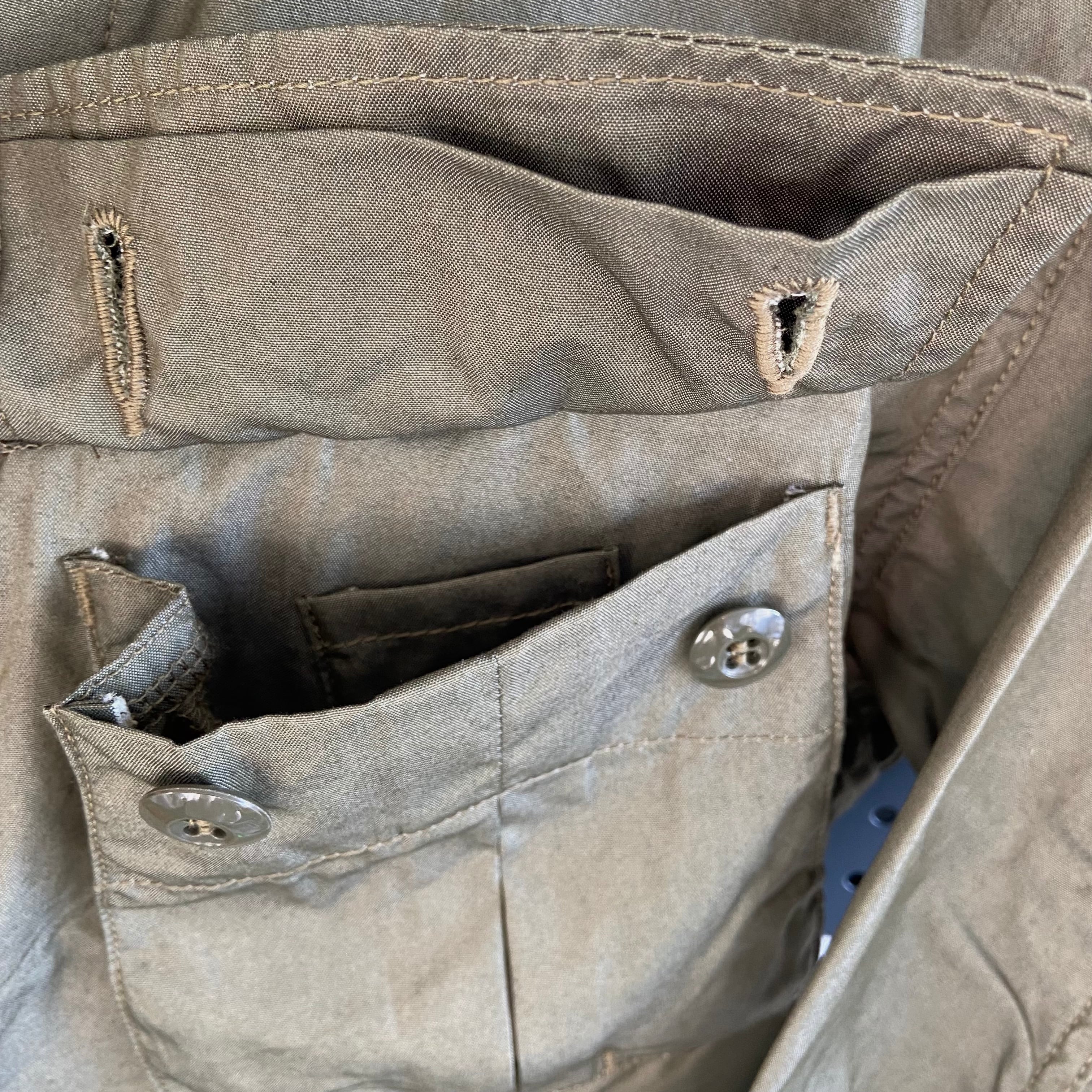 生地は、50年代のビンテージフィールドジャケットで使われていたナイロン+コットンの高密度ポプリンを自社で再現したオリジナルテキスタイルを使用。
