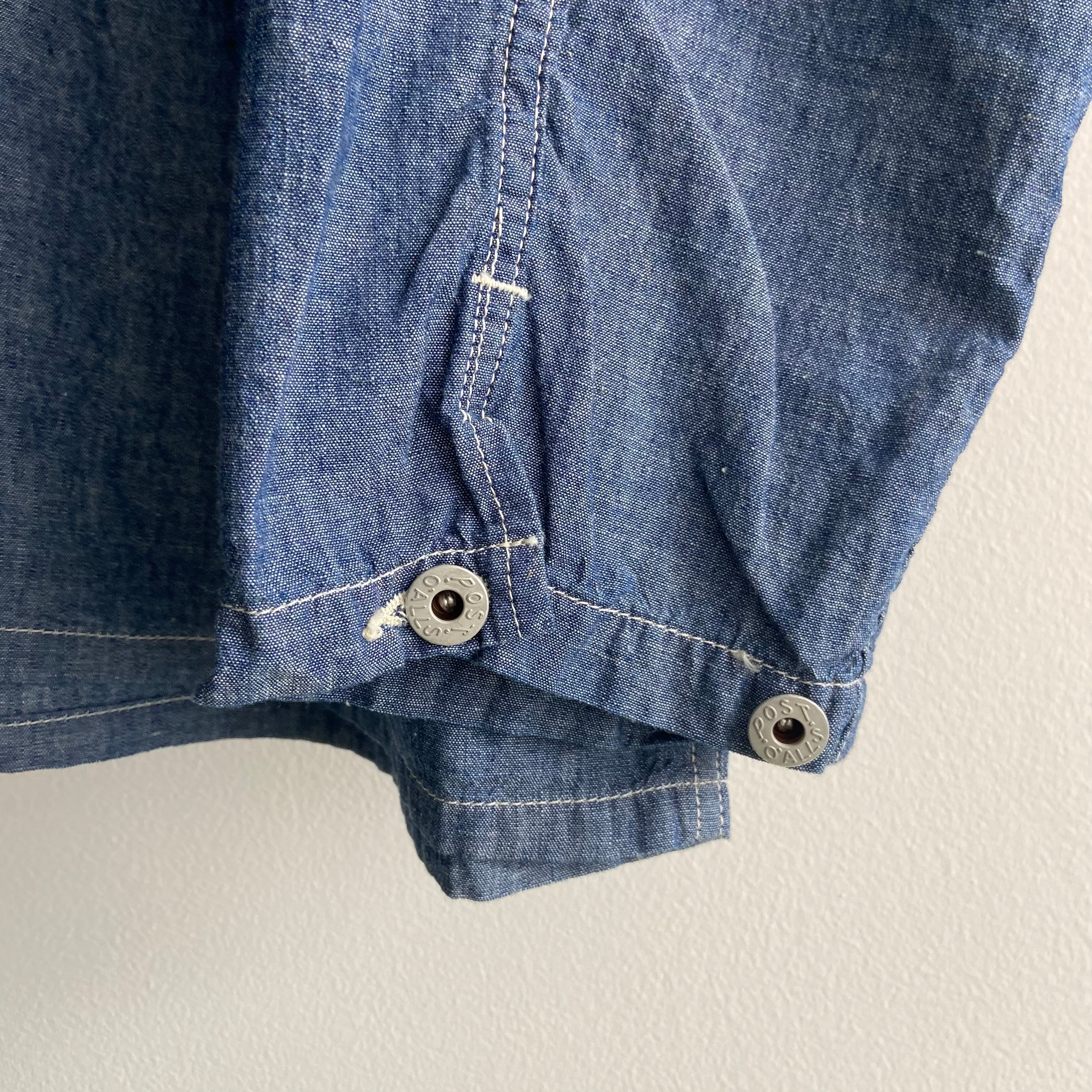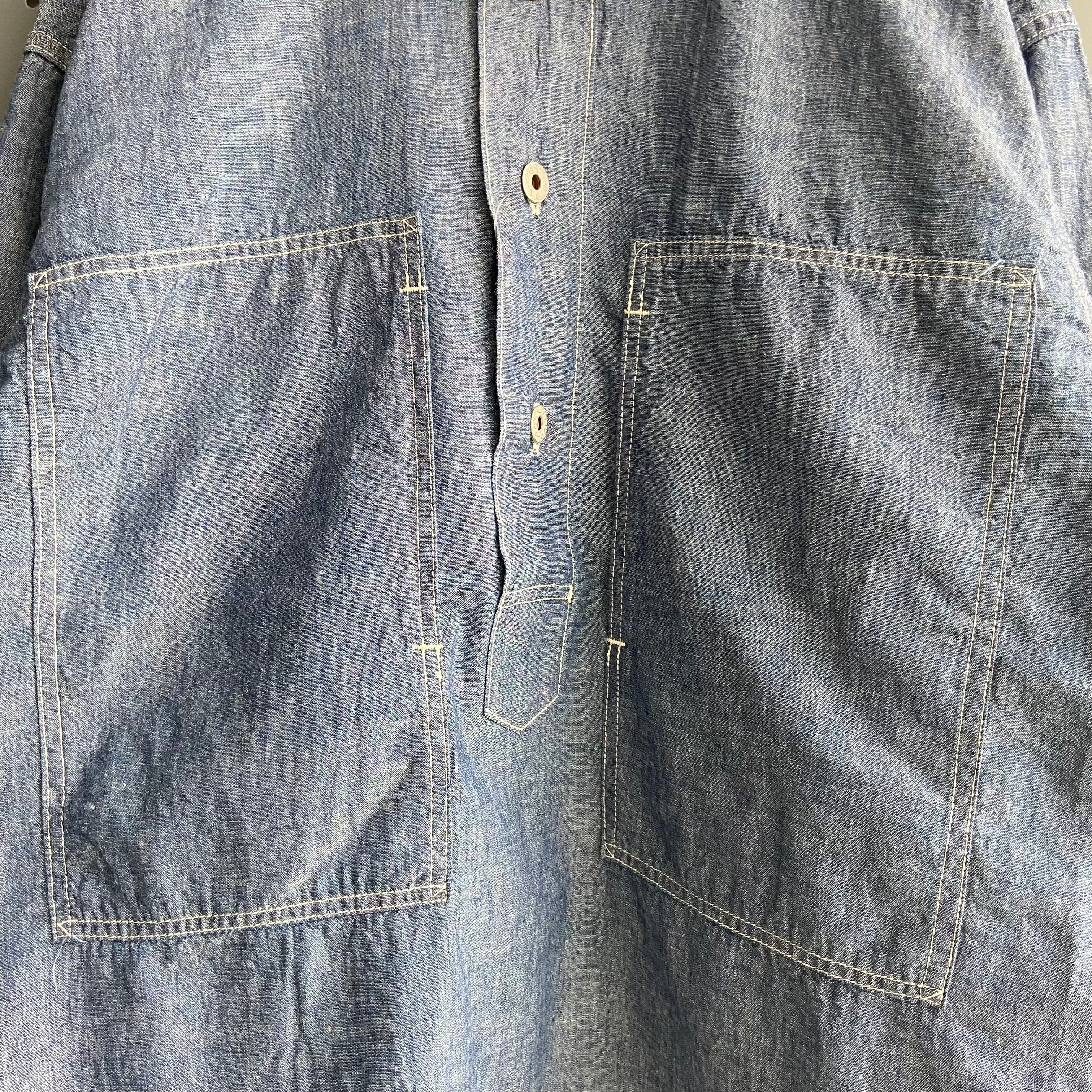 Post O`Alls ではおなじみのアーミーシャツ・・・シンプルで独特なデザインは、まさにマシン・エイジ期のアメリカのダイナミックなムードに溢れています。 今回のリミテッド・リリースは、気持ち着丈を長めに設定してシ ョーツとの相性度を高めています。 Mサイズ 着丈71 肩幅54 身幅65.5 袖丈56 Lサイズ 着丈73 肩幅56 身幅69 袖丈57 Made in Japan. 100% Cotton One wash.