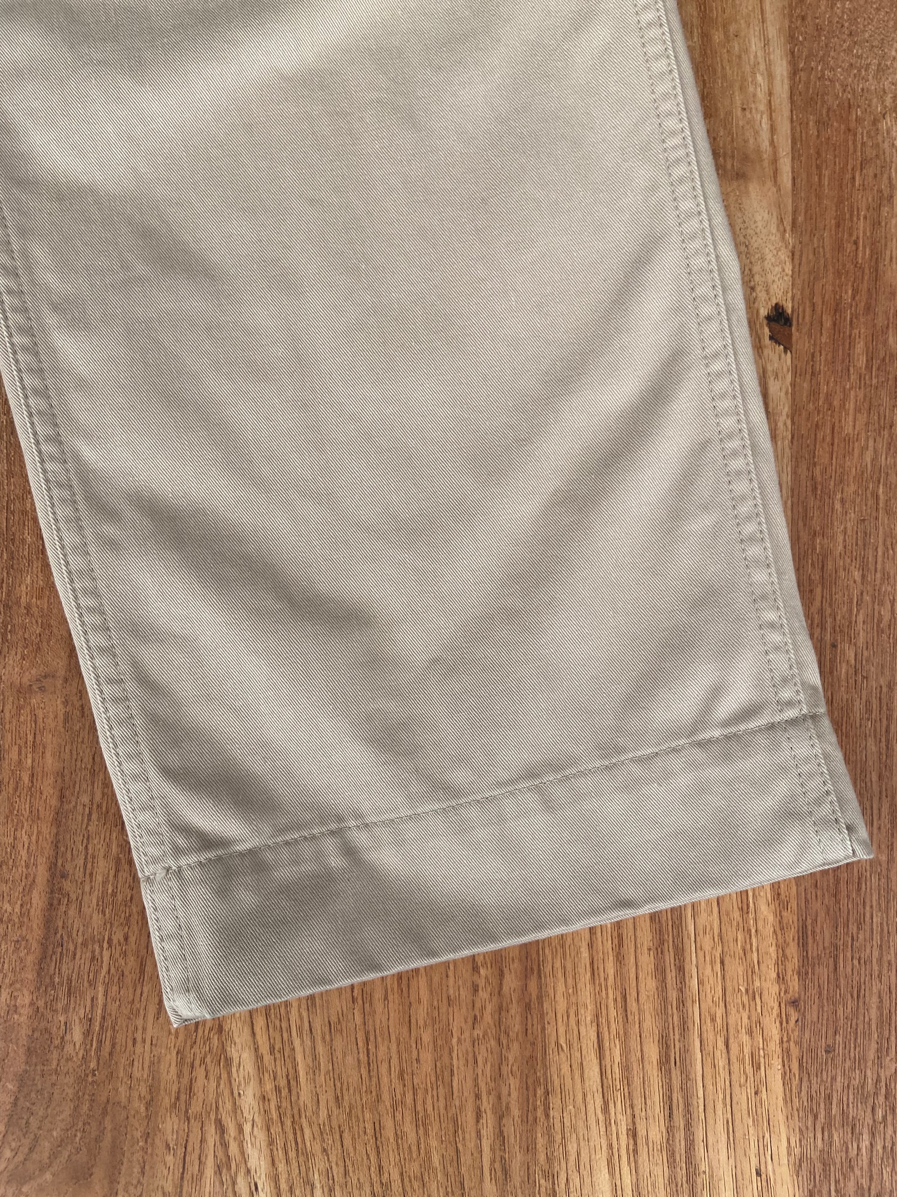生地は、このパンツの柱となるコットンカーキツイルを使用。