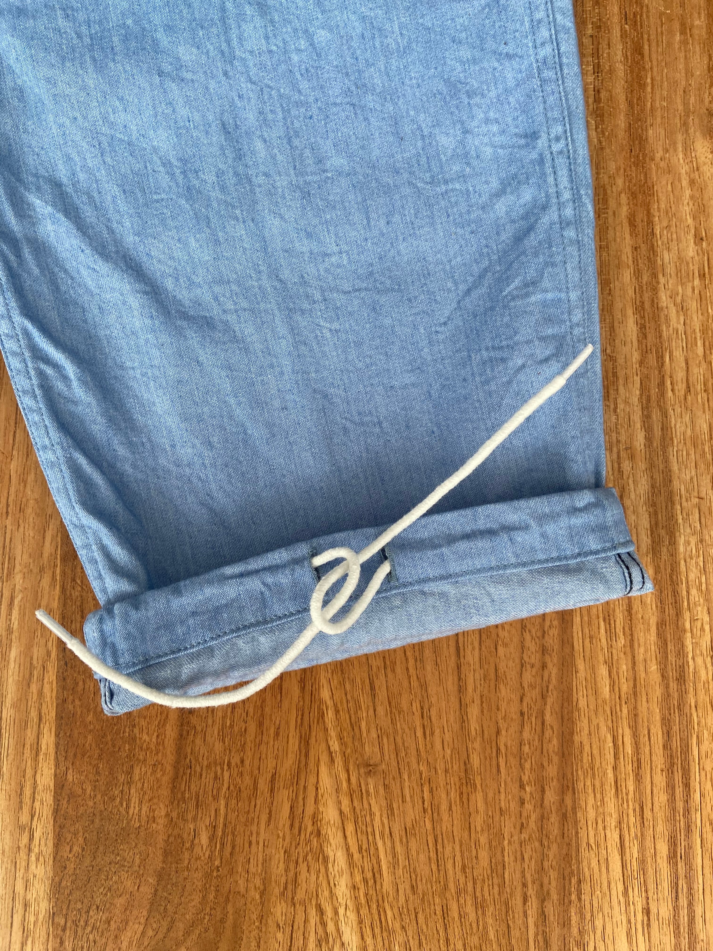 生地は、ブリーチ加工したライトオンスデニムを使用。