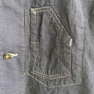 変更点は左胸のポケットで、Post O`Allsの最初のカバーオール品番である#1101 Railroader’s Jacketの、味わい深いデザインとステッチワークを持つポケットを移植しています。