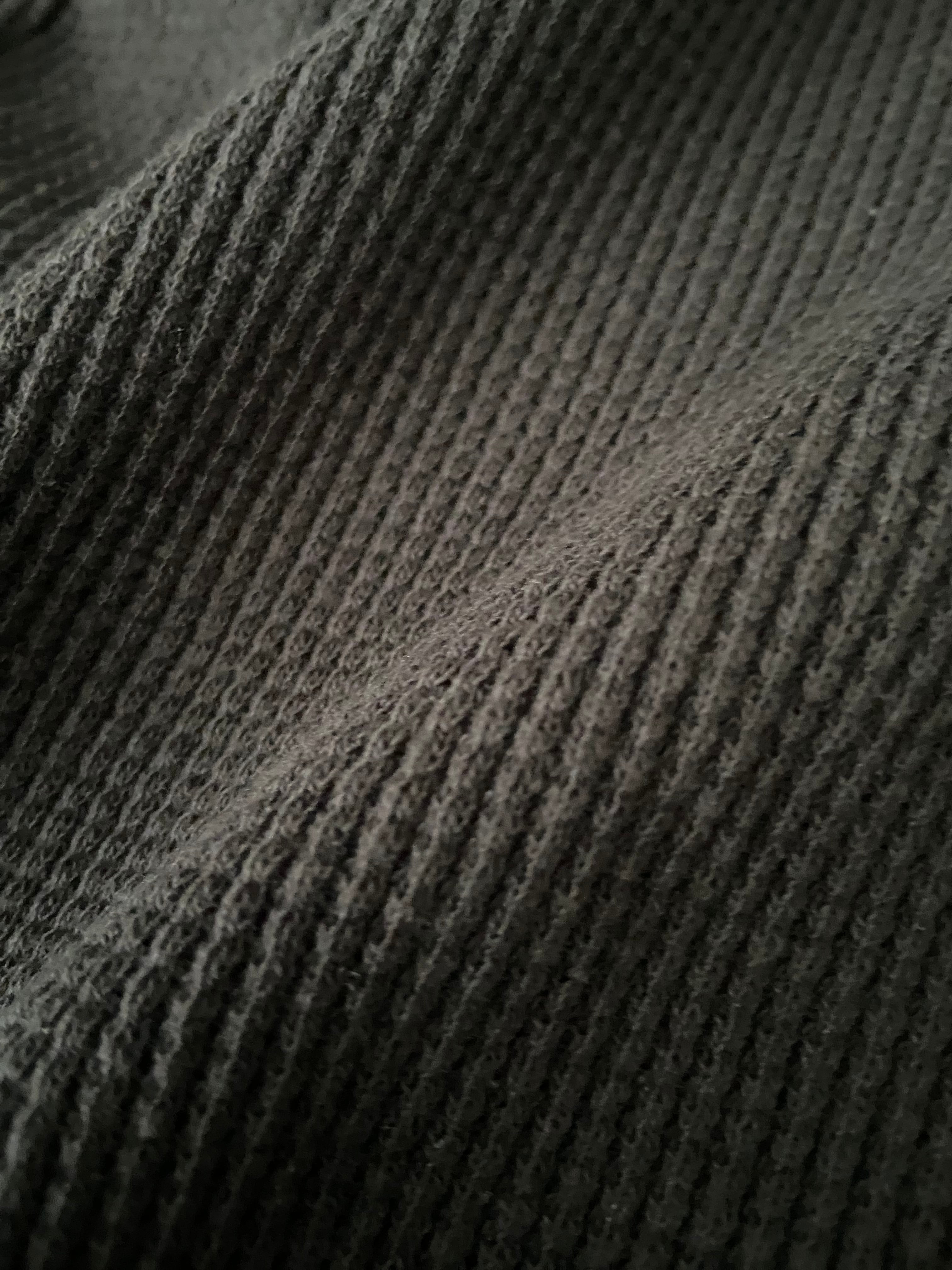 空気を含ませた太番手のオリジナル空紡糸を使用した、シャリ感のある度詰めのワッフル素材。