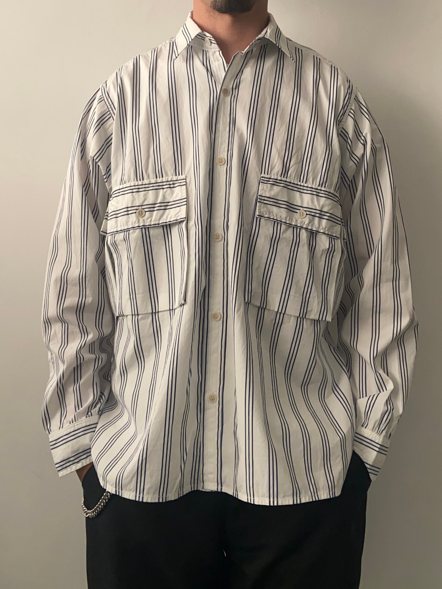 このシャツは、高級ドレスシャツをベースに使いフィッシングジャケットのディテールを組み込んだもので、"COMBAT HIKER JAC SHIRT"の前身となるシャツジャケットです。