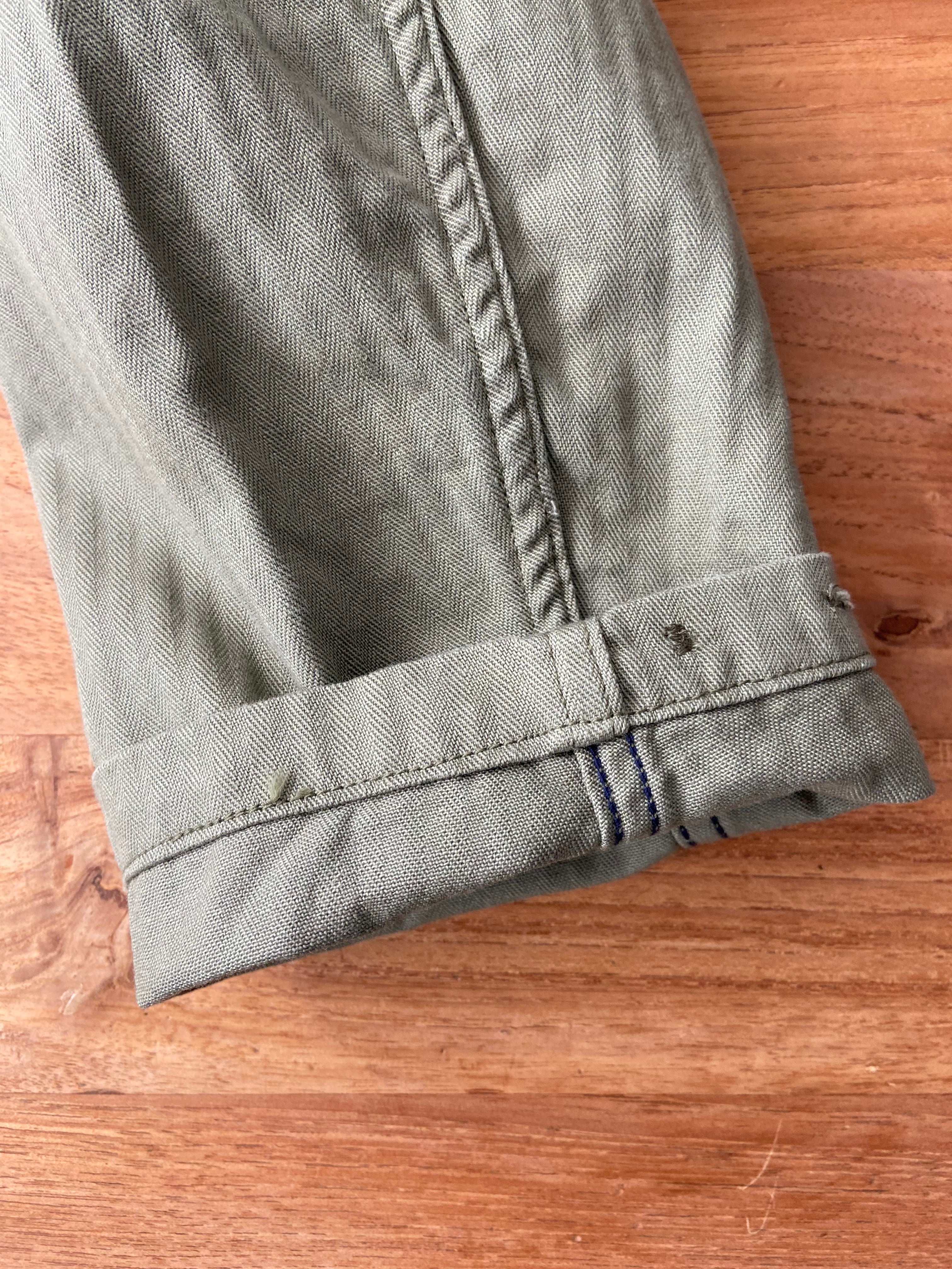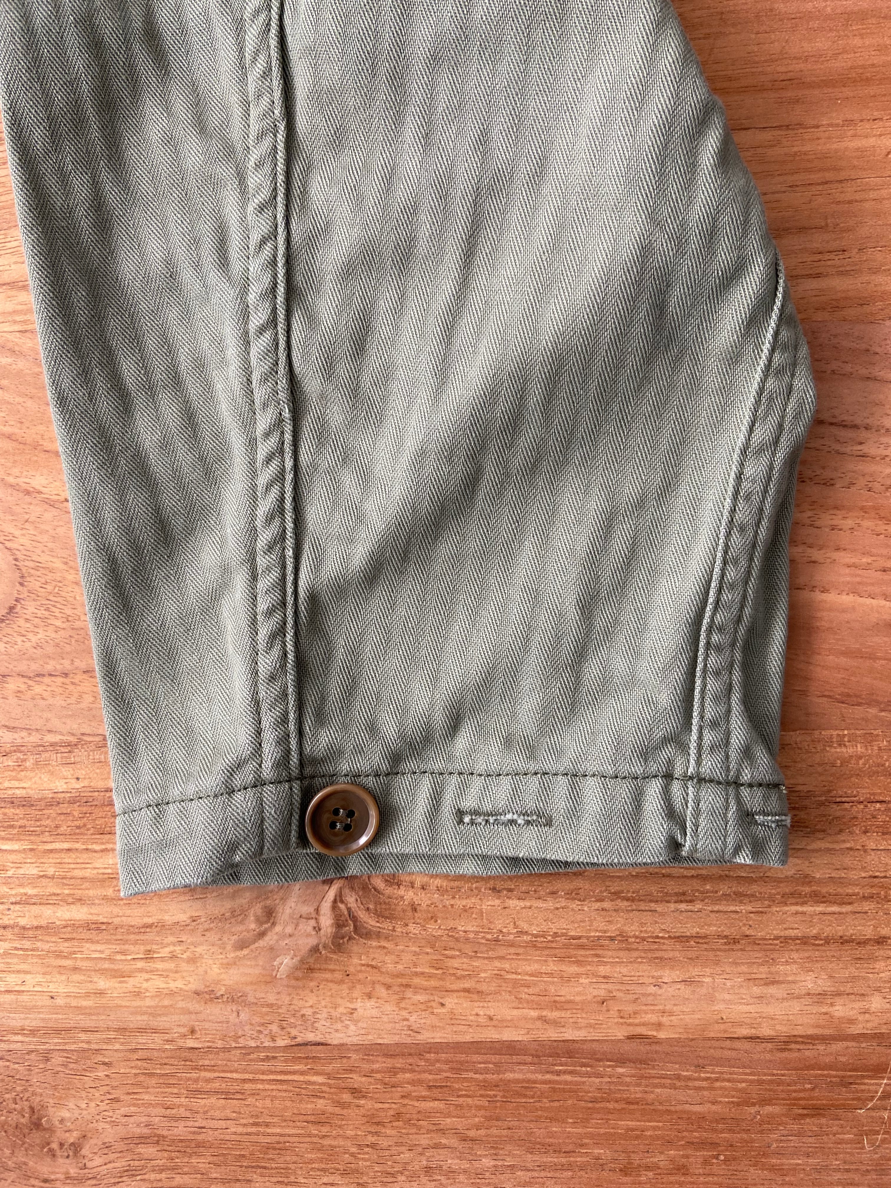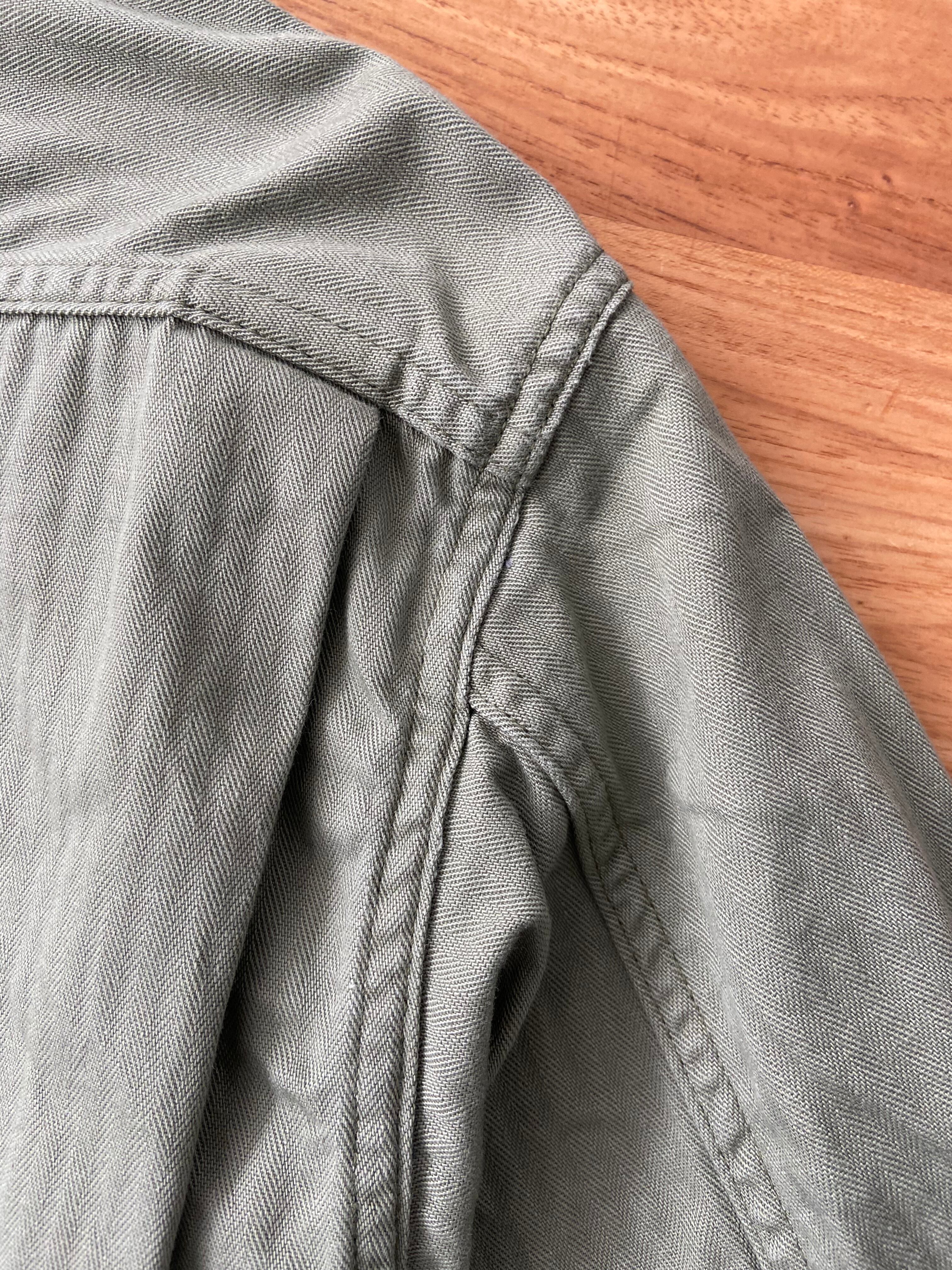 生地は40年代のUS NAVY・ワークウエアユニフォームで使用されていたOG ヘリンボーンツイルを再現した生地。