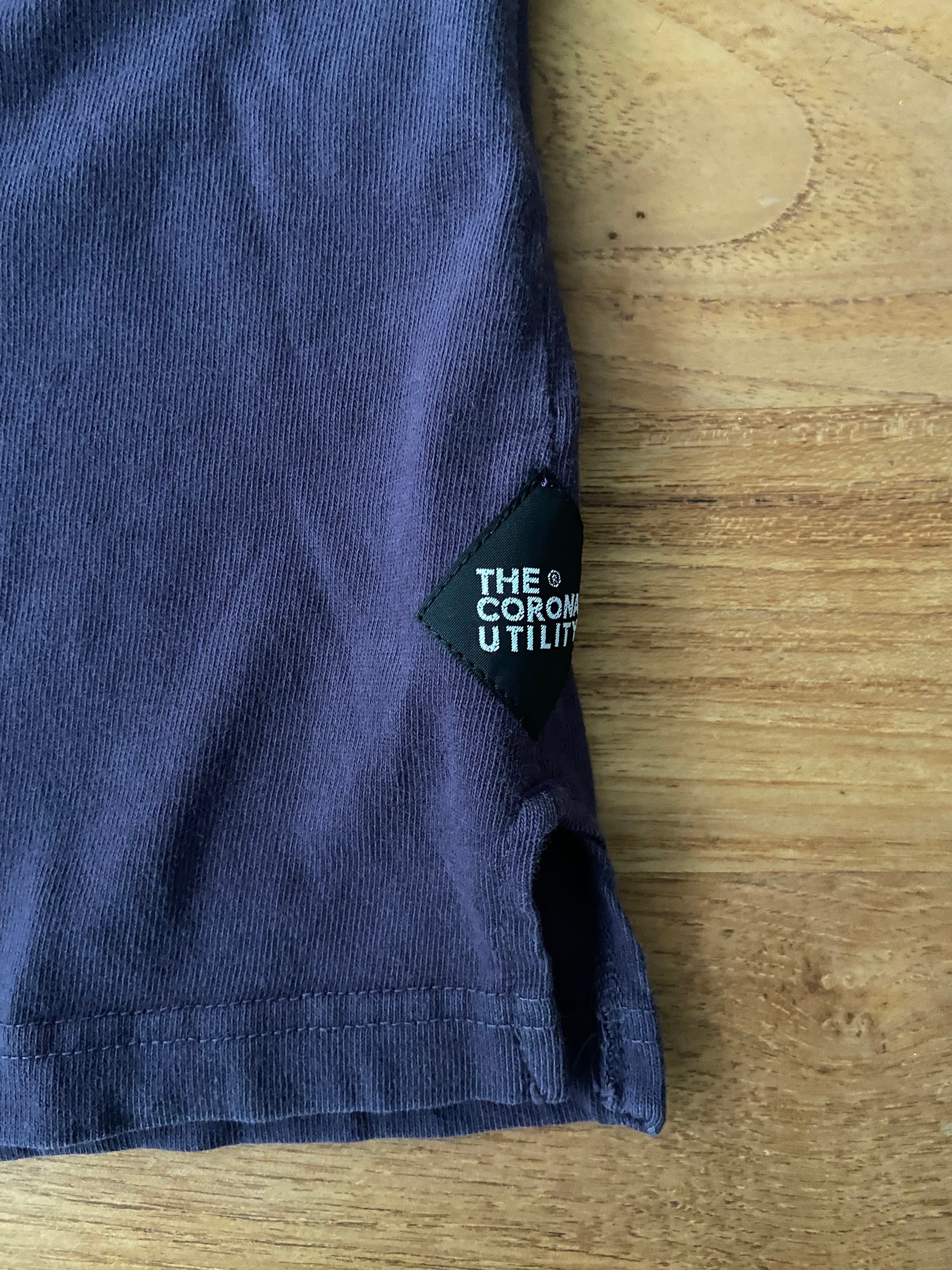 本来ポケット上にTHE CORONA UTILITYのロゴ刺繍が入るのですが、今回DEXIMで特別にポケットの刺繍を排除し、サイドのスリット上部のロゴのみが際立つexclusiveなアイテムに仕上がっております。