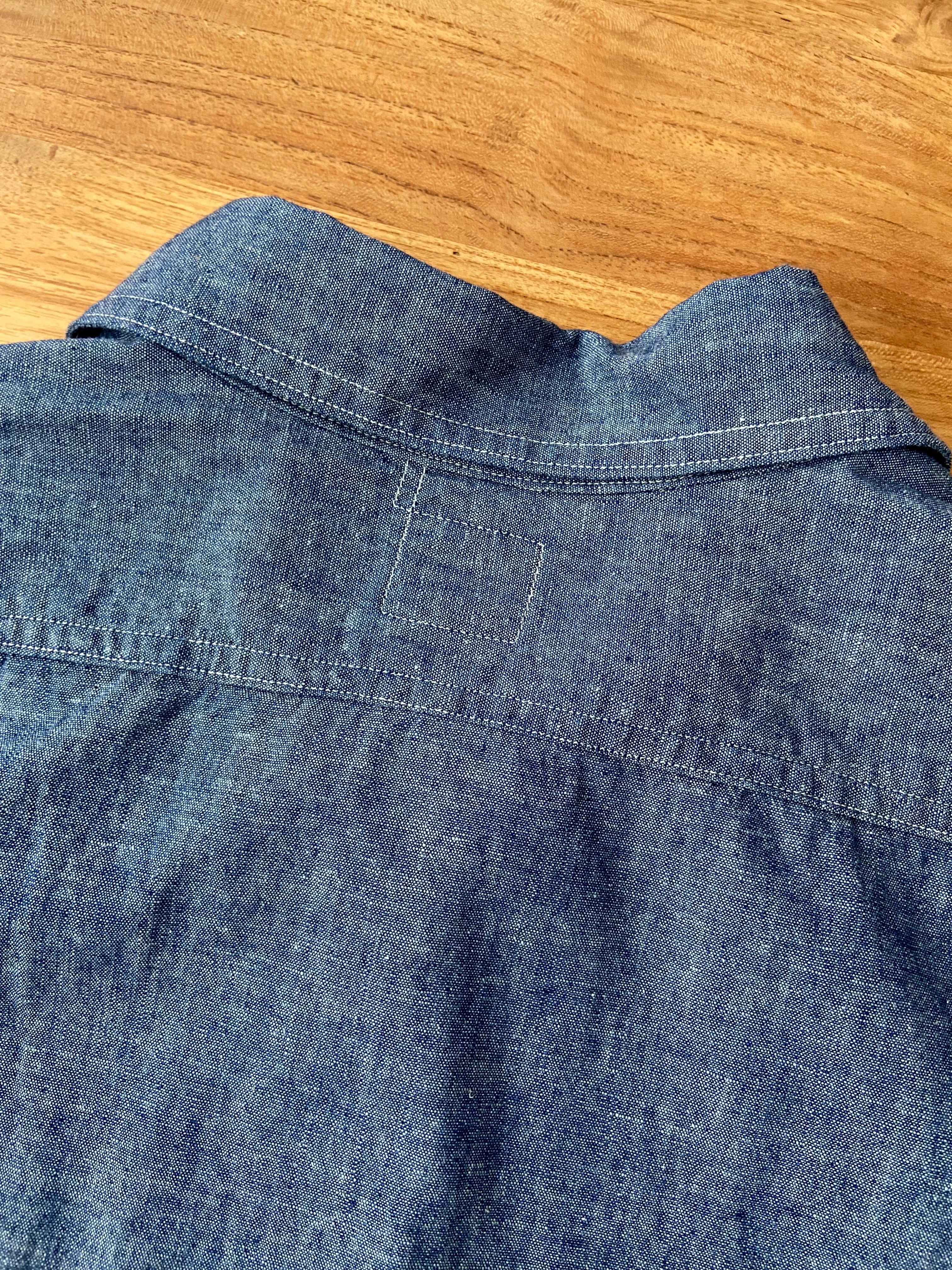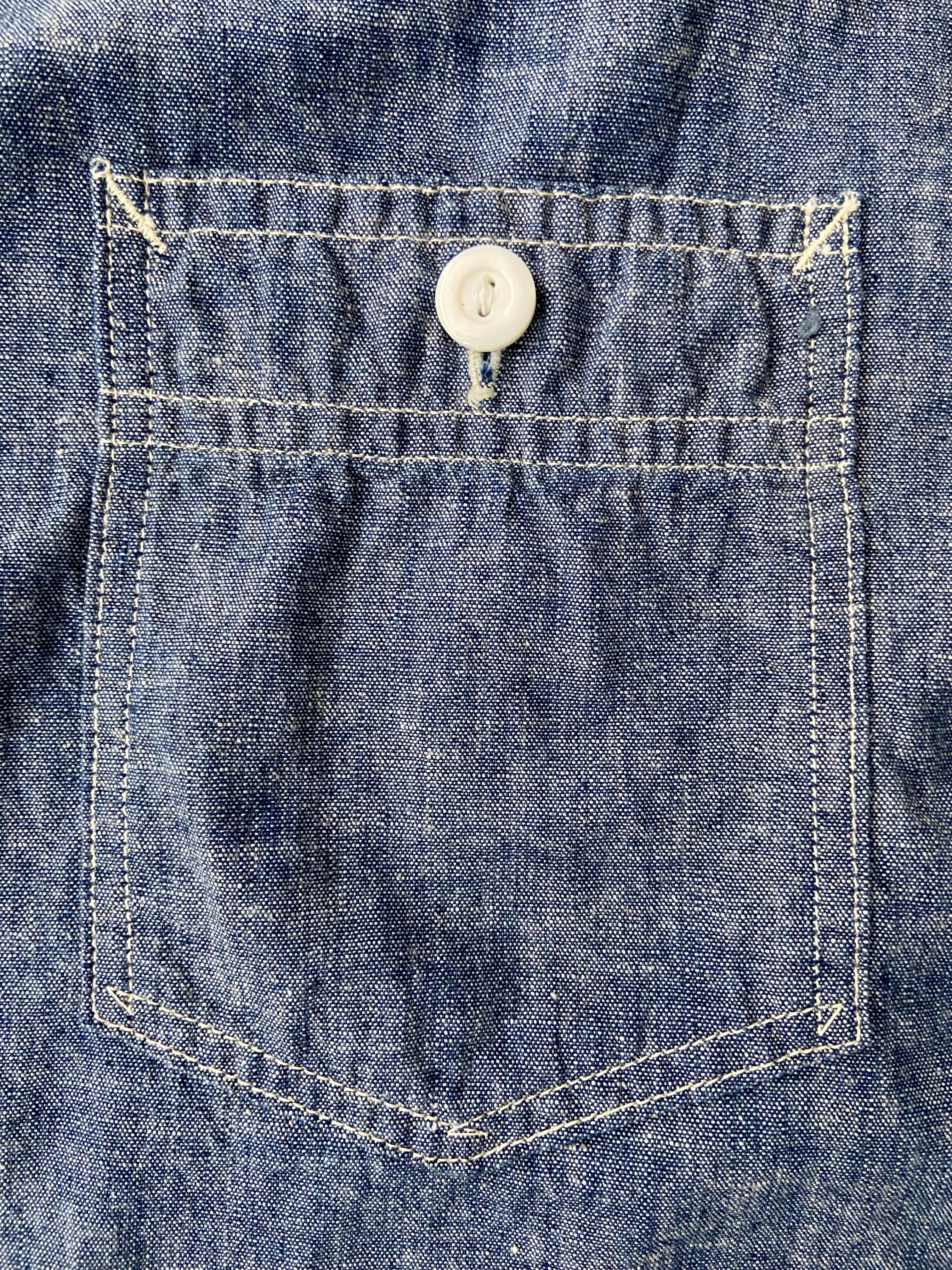 ワークシャツでは最もスタンダードで美しいと考えるホームベース型ポケットを搭載したシャンブレーシャツです。