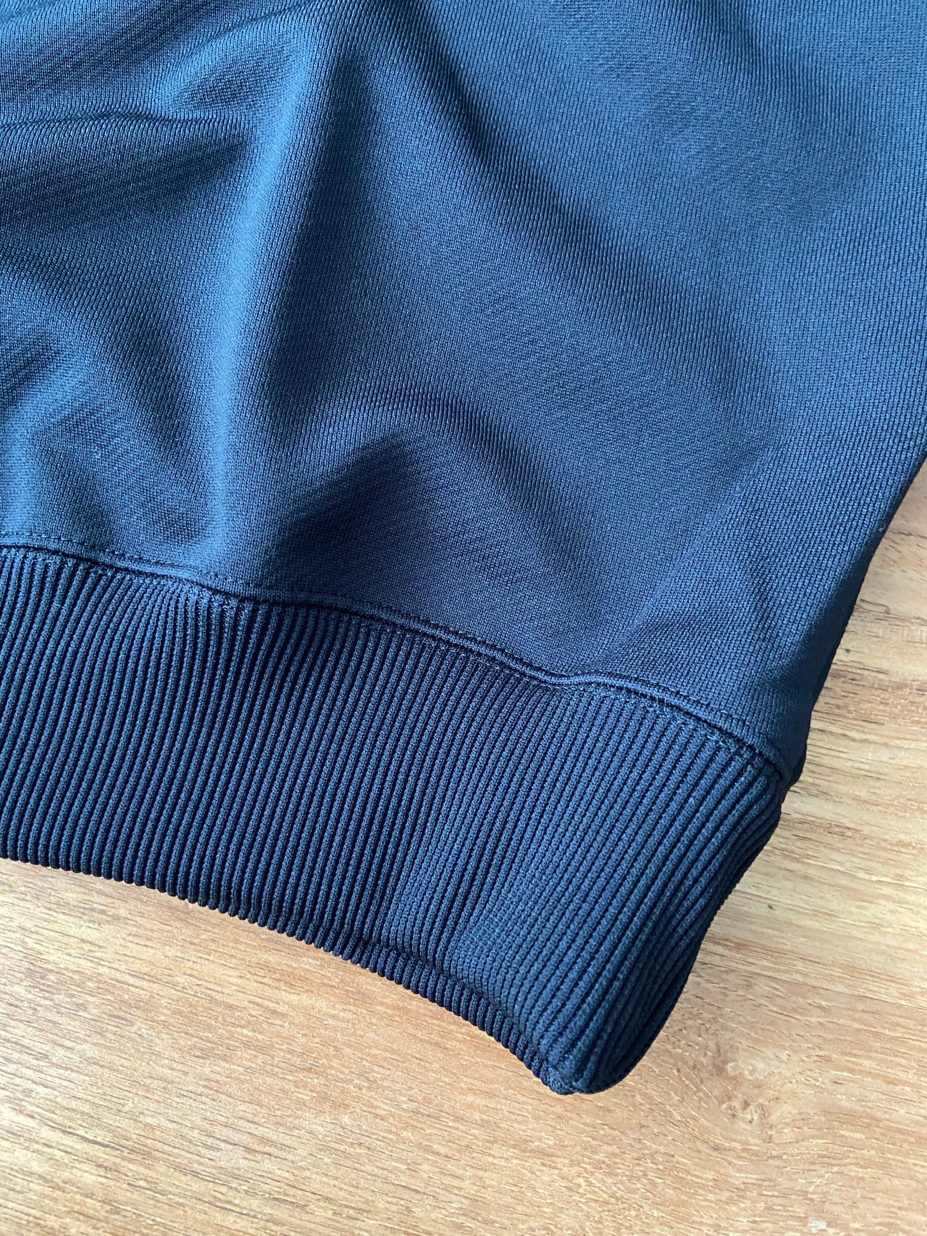 表ポリエステル・裏コットン素材を使用したスポーティーな雰囲気のTRAINING JERSEY 左胸には同色のロゴ刺繍。 肩から袖にかけてのニットラインテープによりシンプルながらも個性のあるアイテムです。 Lサイズ 着丈71 身幅61 肩幅54.5 袖丈62 POLYESTER 55% COTTON 45% MADE IN JAPAN MODEL 182cm70kg / Lサイズ