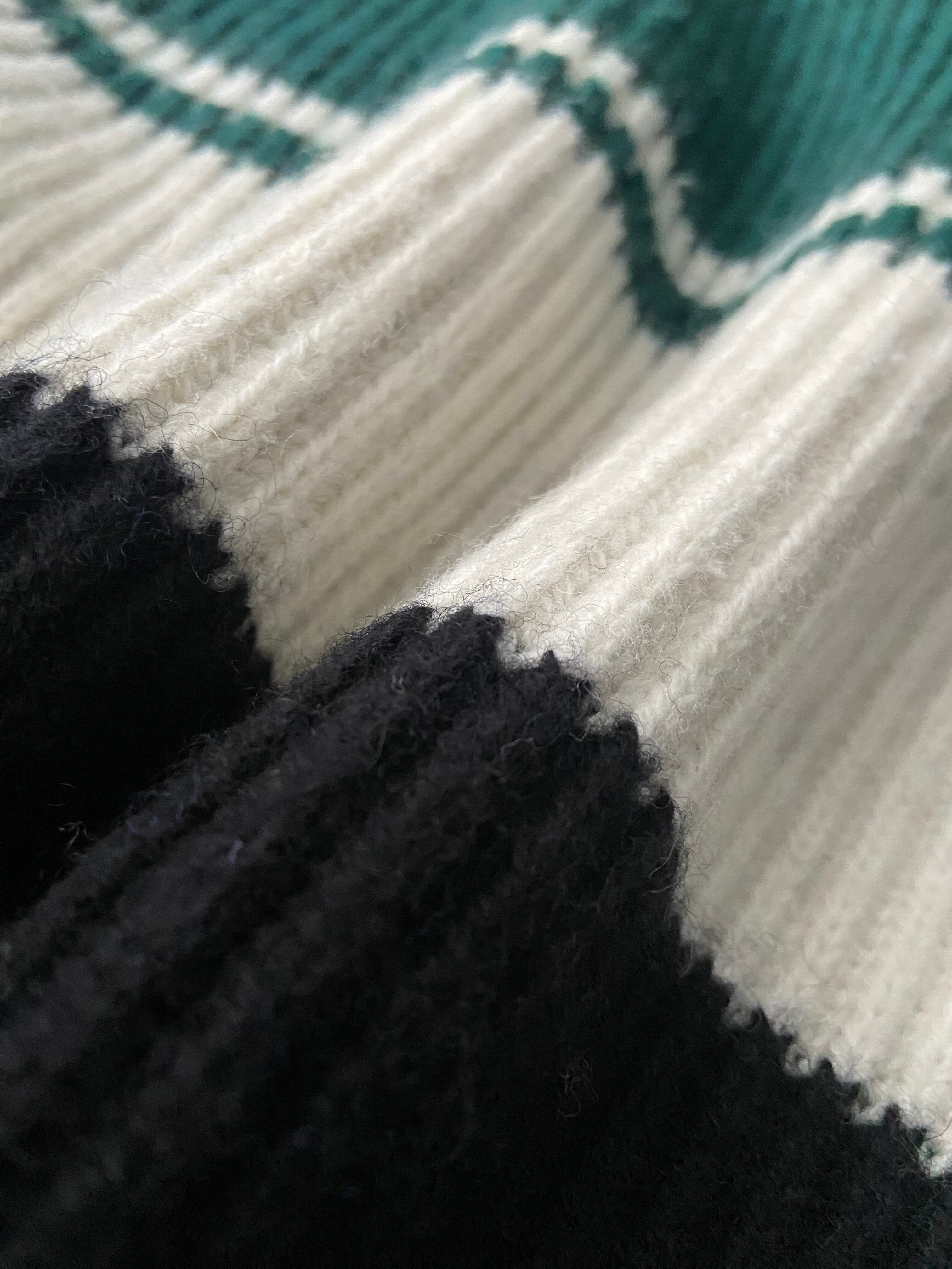 80sフットボールカルチャーのトラックトップからインスパイアされたパネル配色のニット。