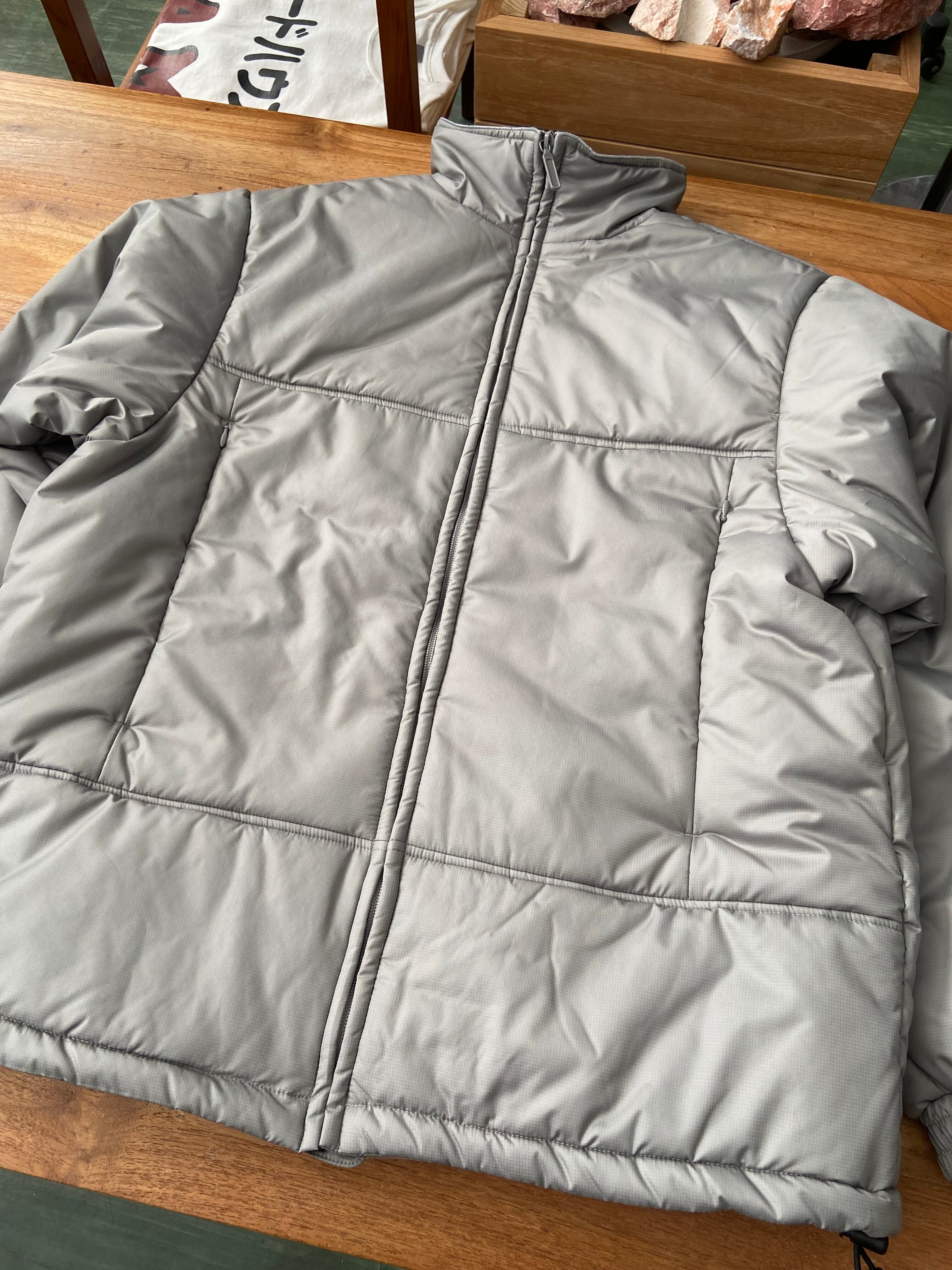 ミニマルなデザインの中綿ジャケット。