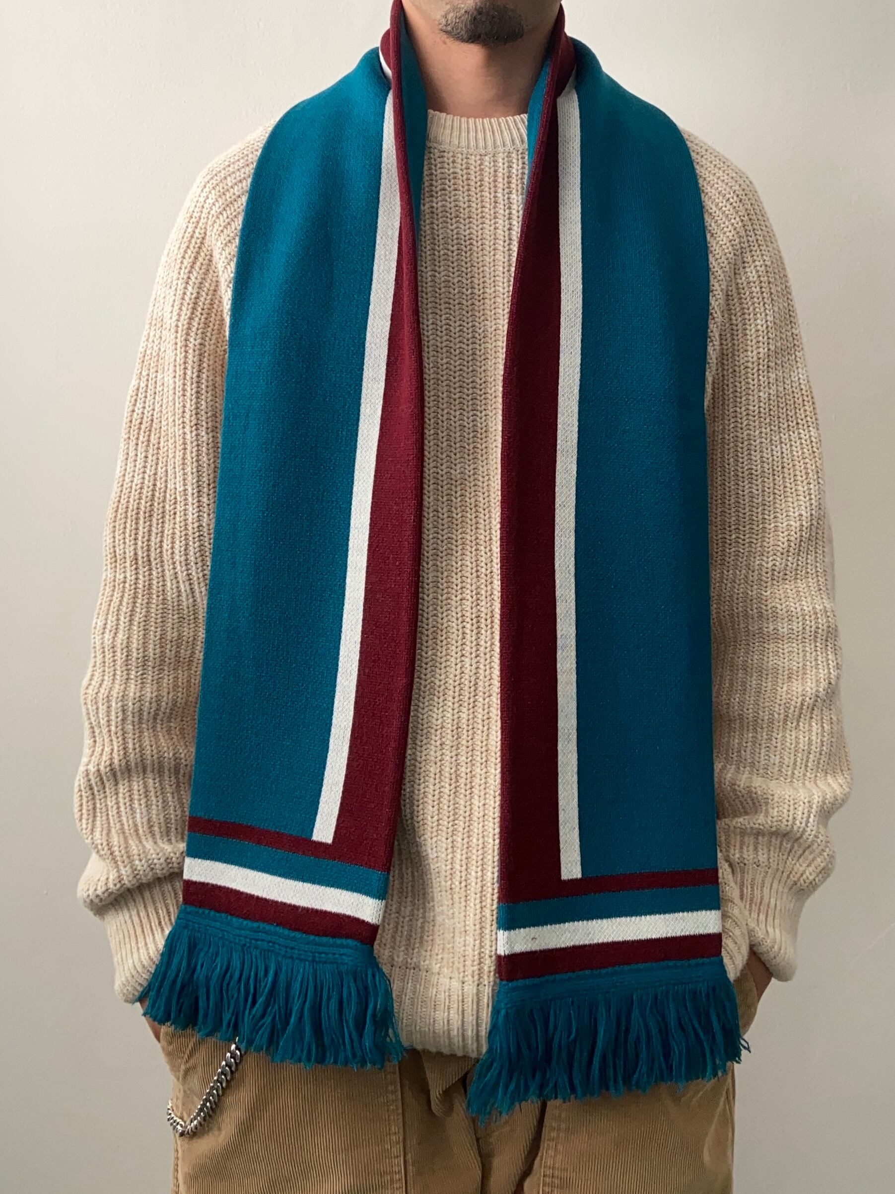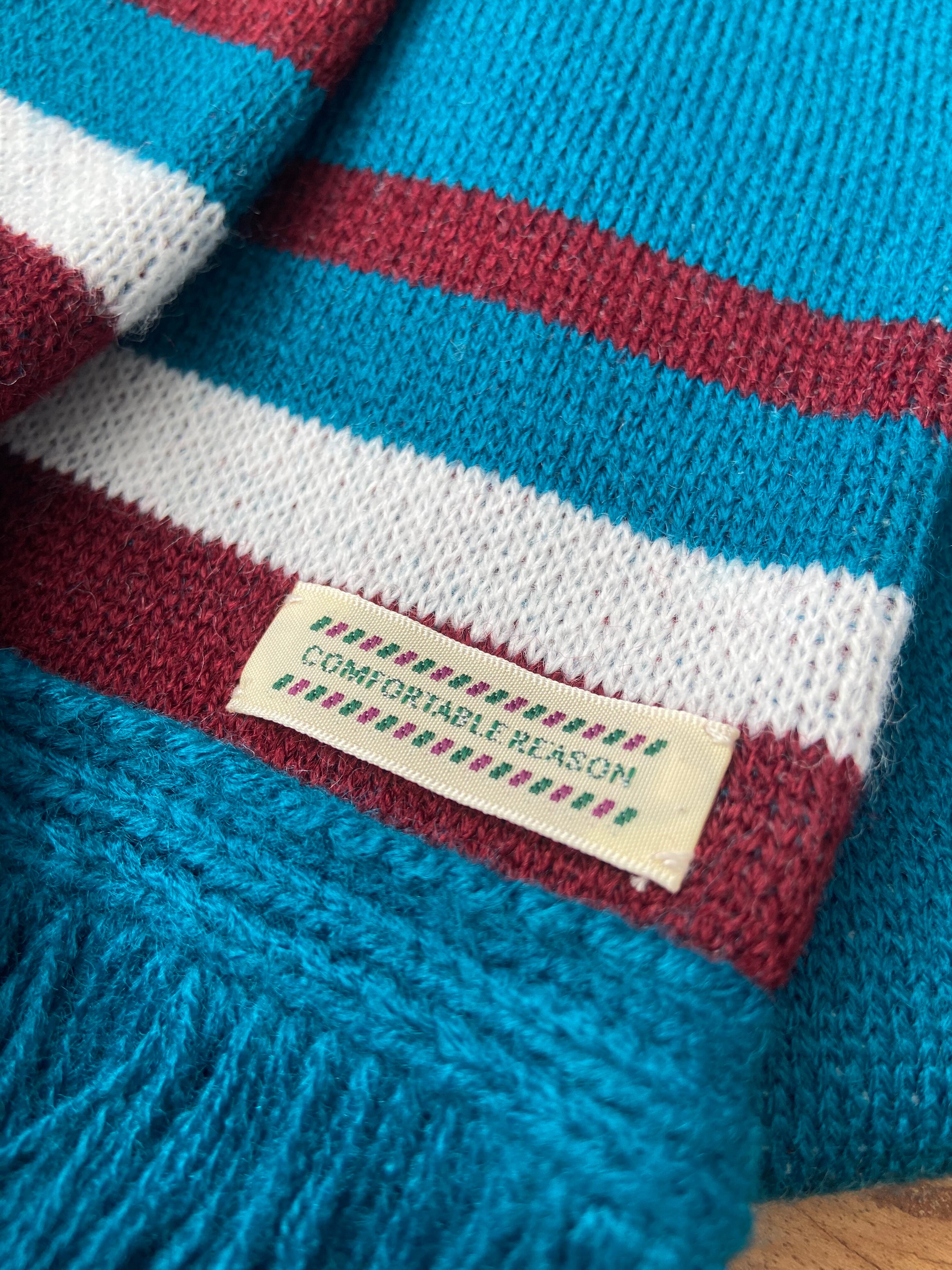 アクリル 100%で編み立てた使い勝手の良いスカーフ。 表側は De Stil 調の直線的なパターンを配し裏側はシンプルなラインのみの異なるパターンとなるリバーシブル仕様。 ONE SIZE 全長160cm 幅17cm ACRYL 100%