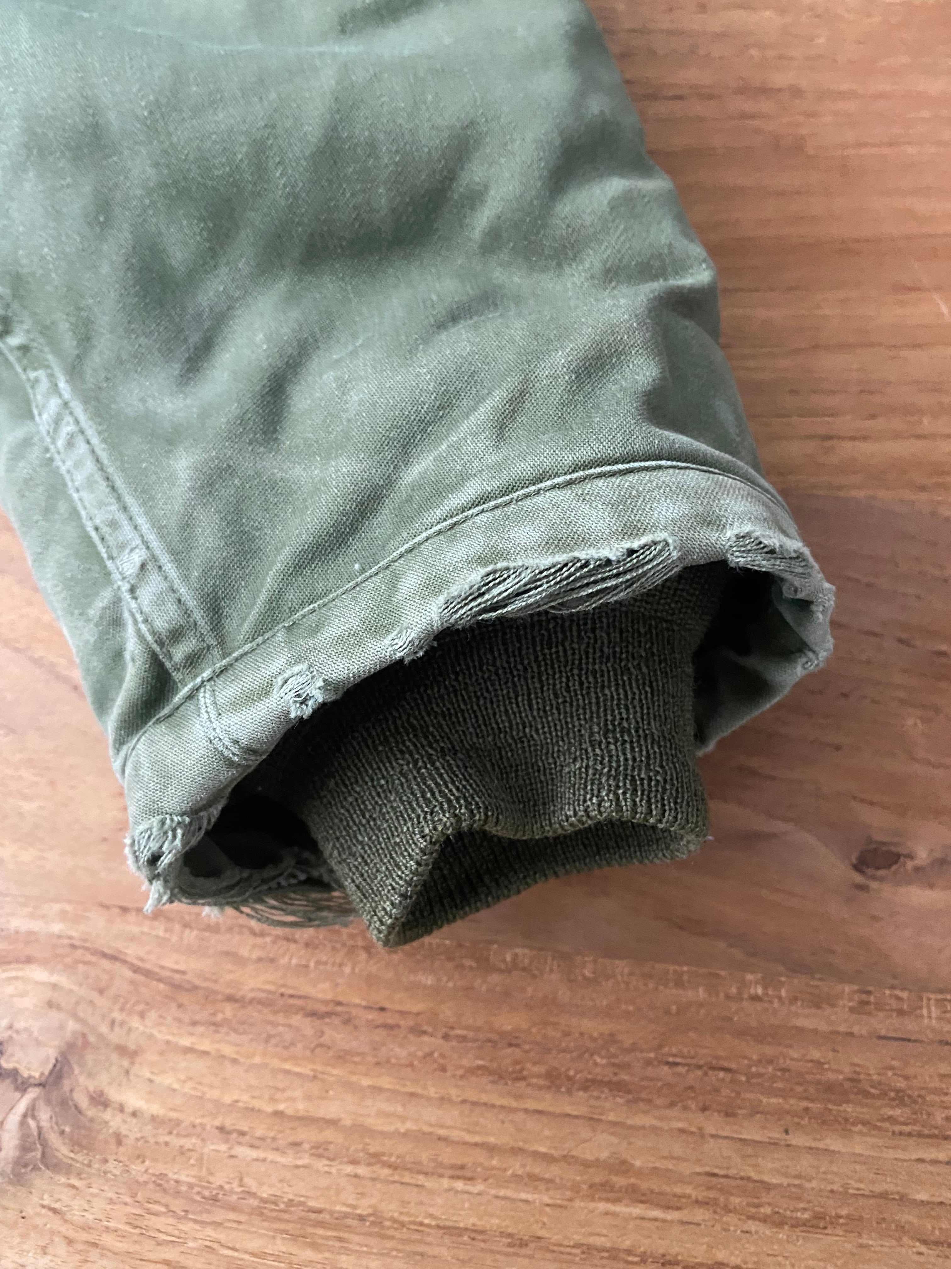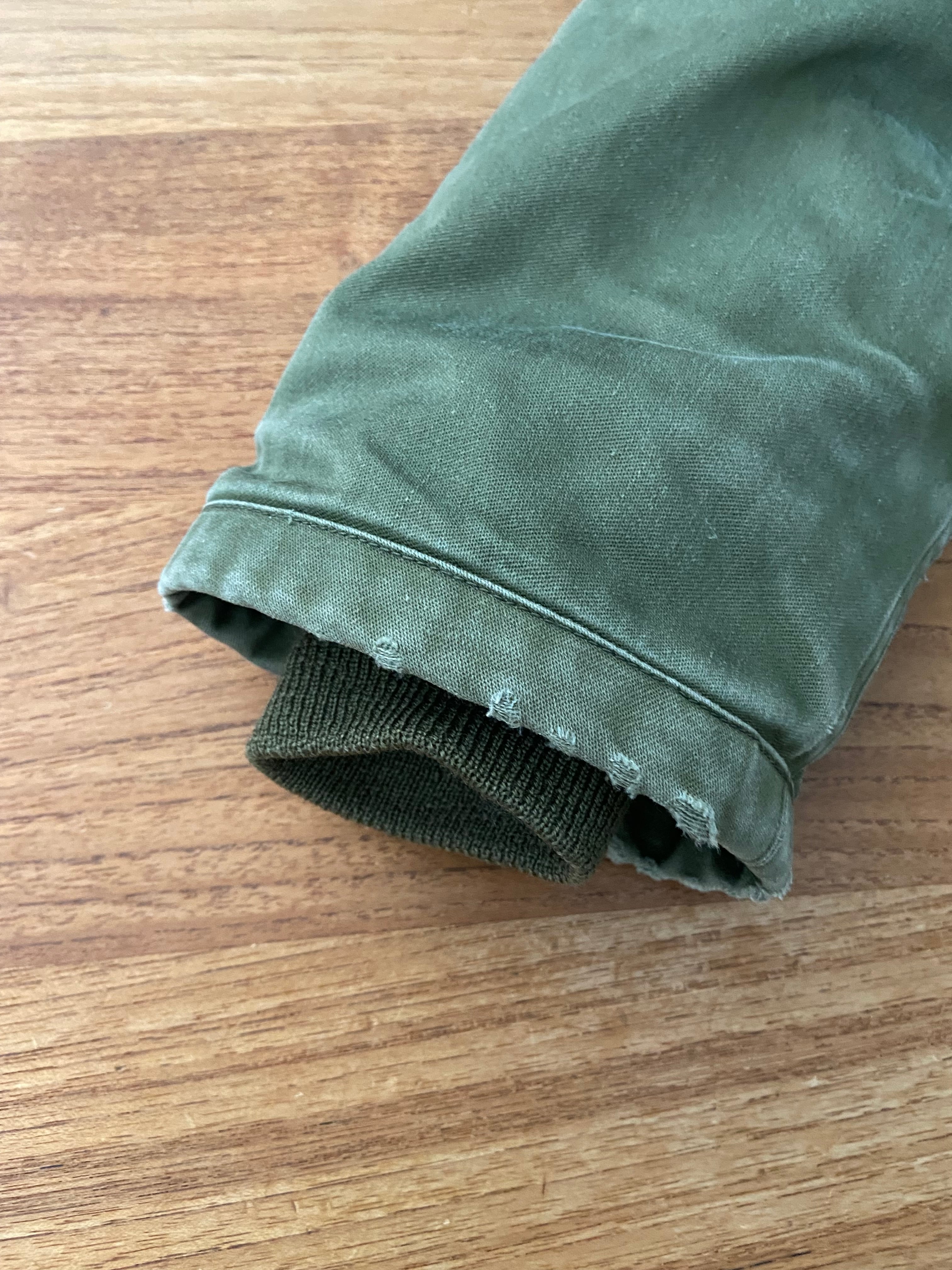 襟と袖にダメージがありますがリブは綺麗で、ボタン、アジャスター、タロンジップ等欠品なく、内側のボアも破れ等ないです。