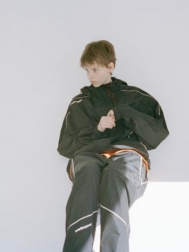 撥水性を持ち高級感のあるDICROSと、ストレッチ性のある通気性に優れたソフトシェルとの切り替えしが特徴のTrack Jacket。 前たて横のベンチレーションと組み合わせより通気性を調整できます。 ブランドロゴはリフレクタープリント。 Lサイズ 着丈73 身幅64 裄丈91.5 表地 POLYESTER 100% 裏地 POLYESTER 100% MADE IN JAPAN