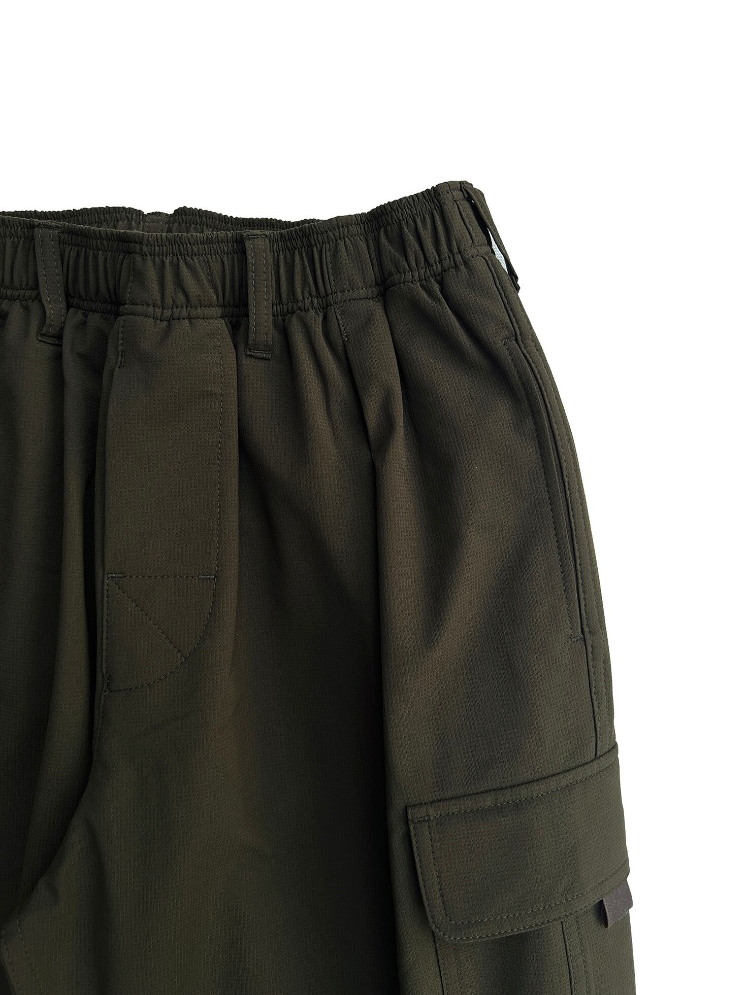 高度なストレッチ性と回復性を備えたドビーストレッチ素材のカーゴスラックス。 ブランド定番のスラックスタイプでテーパード感のあるスッキリとしたシルエット。 バックポケットはファスナーポケットで、ウエストはゴム仕様ながらベルトループも付くのでタックインでの着こなしにも対応。 One Size ウエスト:68cm~90cm 股上:32cm 股下:69cm ワタリ:37.4cm 裾巾:22cm POLYESTER 100%