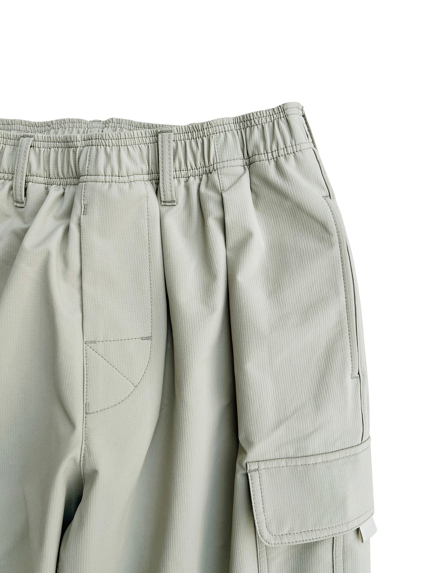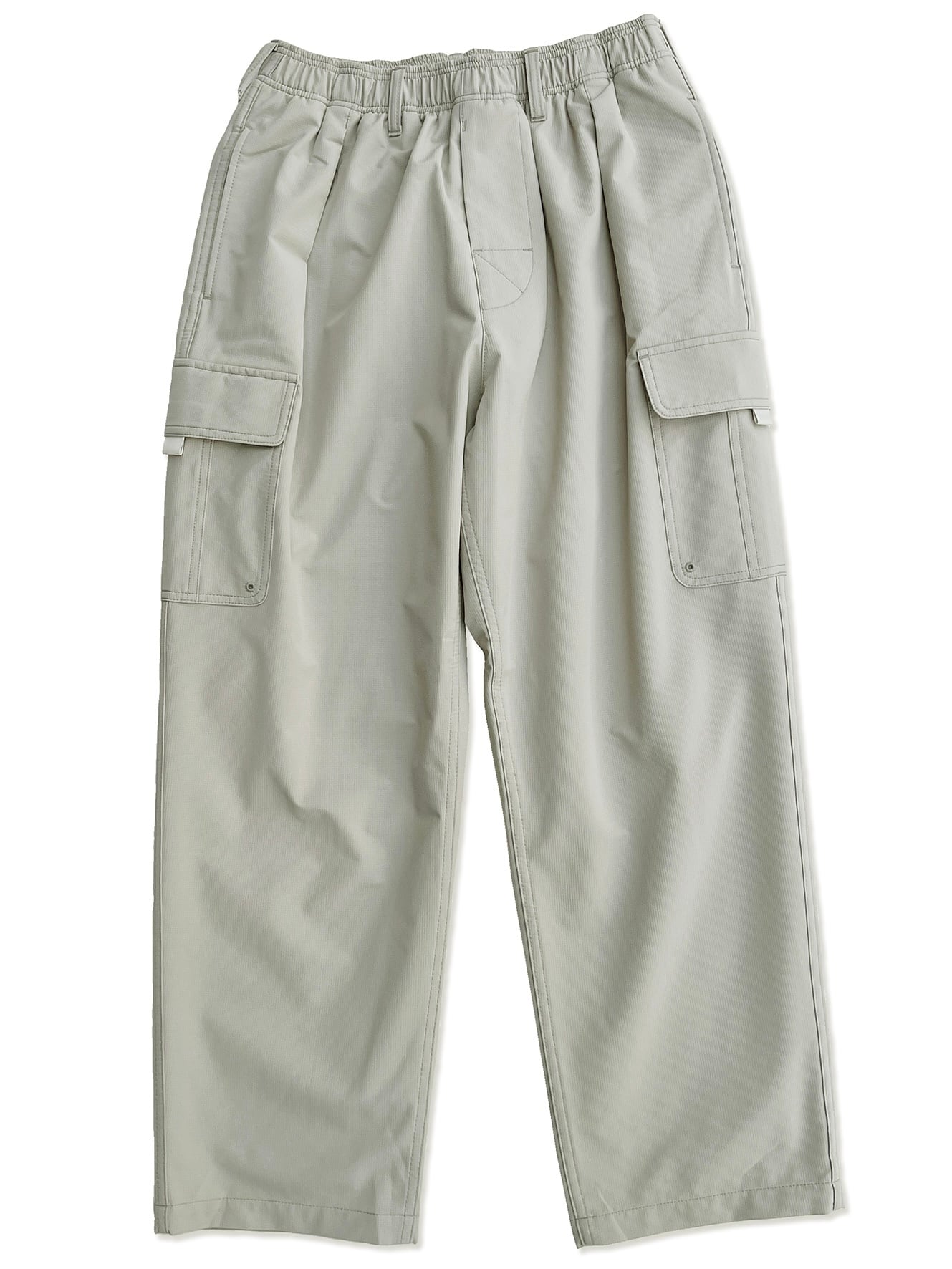 高度なストレッチ性と回復性を備えたドビーストレッチ素材のカーゴスラックス。